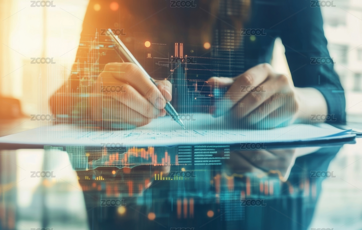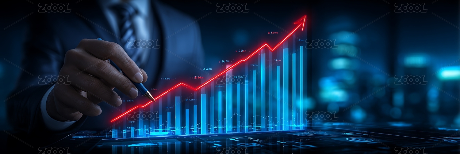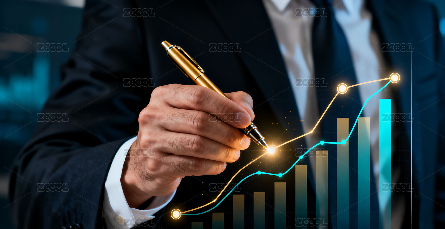办公场景,商务人士,数据分析,股票走势,增长图标