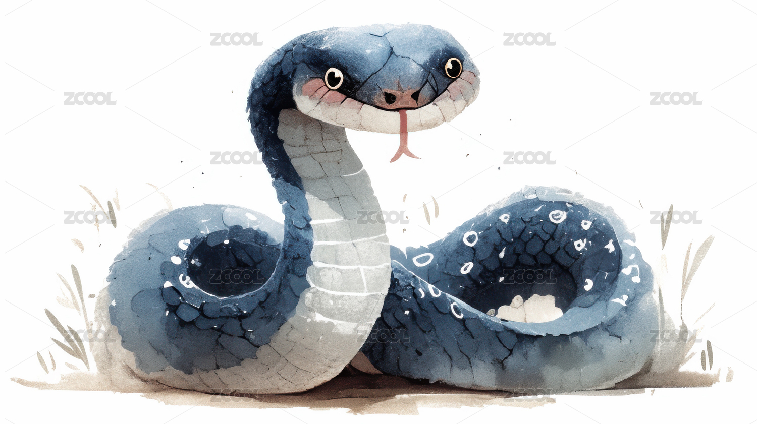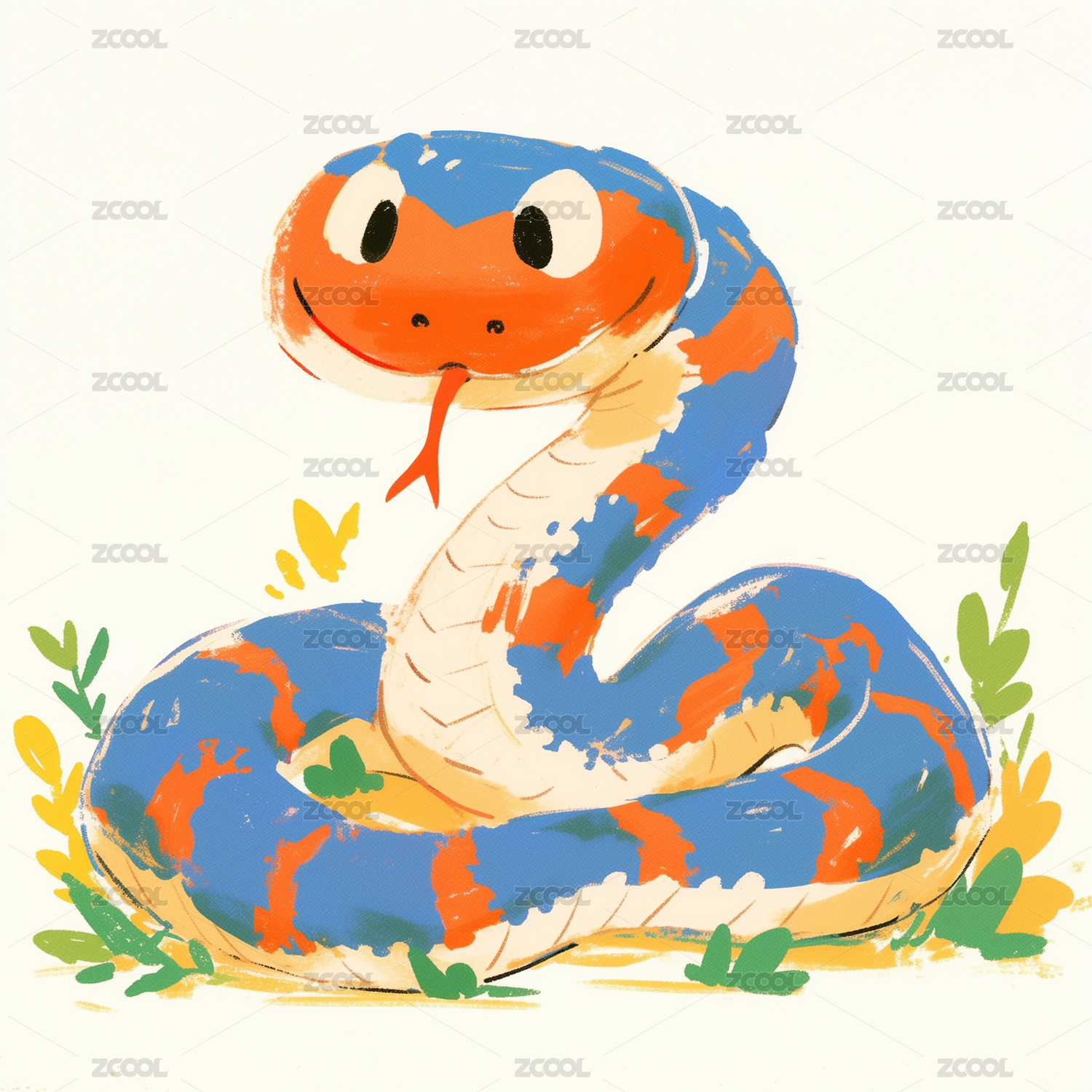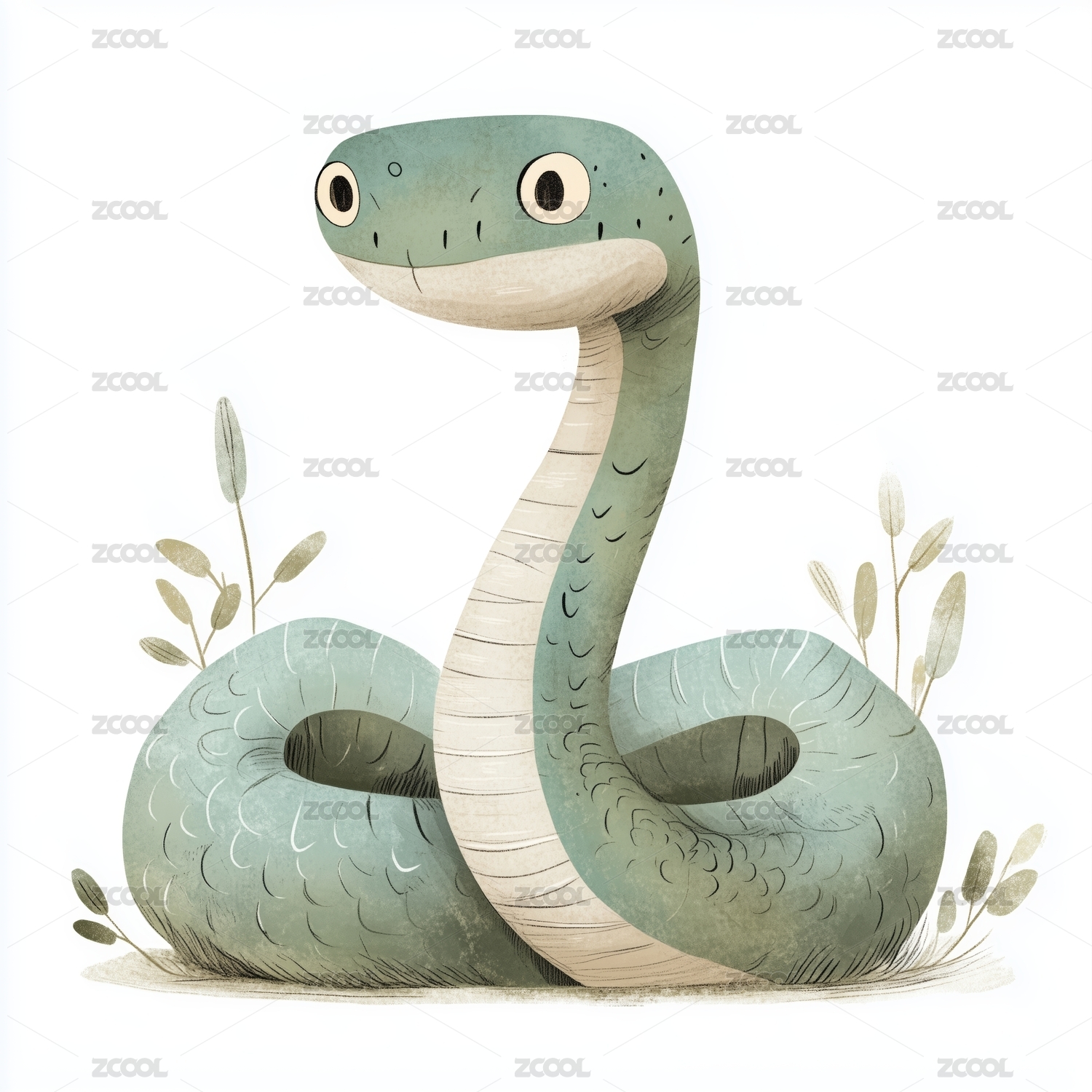 清新明亮一条可爱弯曲盘绕的蛇插画绘画