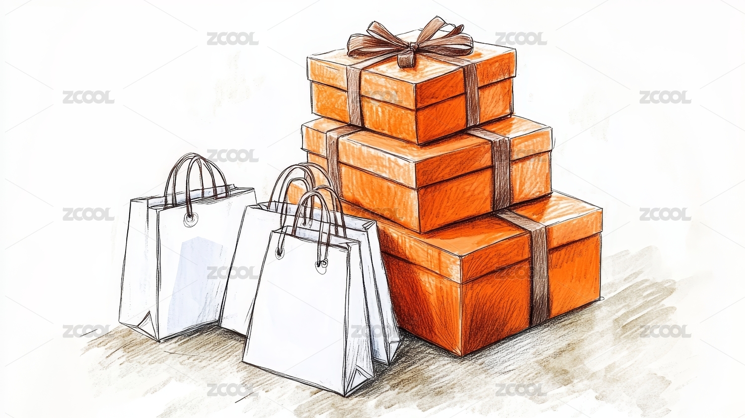 手绘线条-购物办公用品