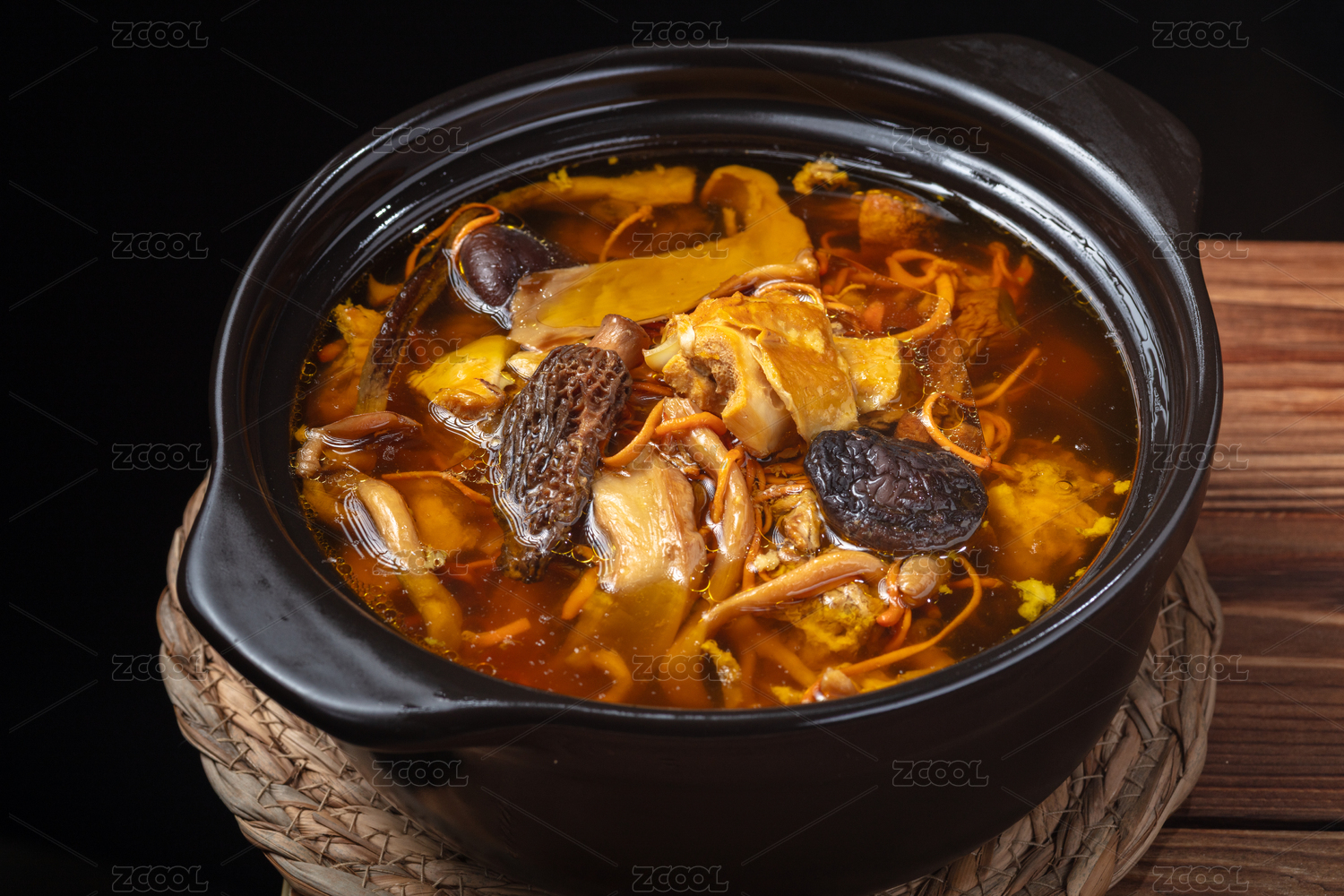 砂锅里的冒着热气的玉米莲藕炖排骨