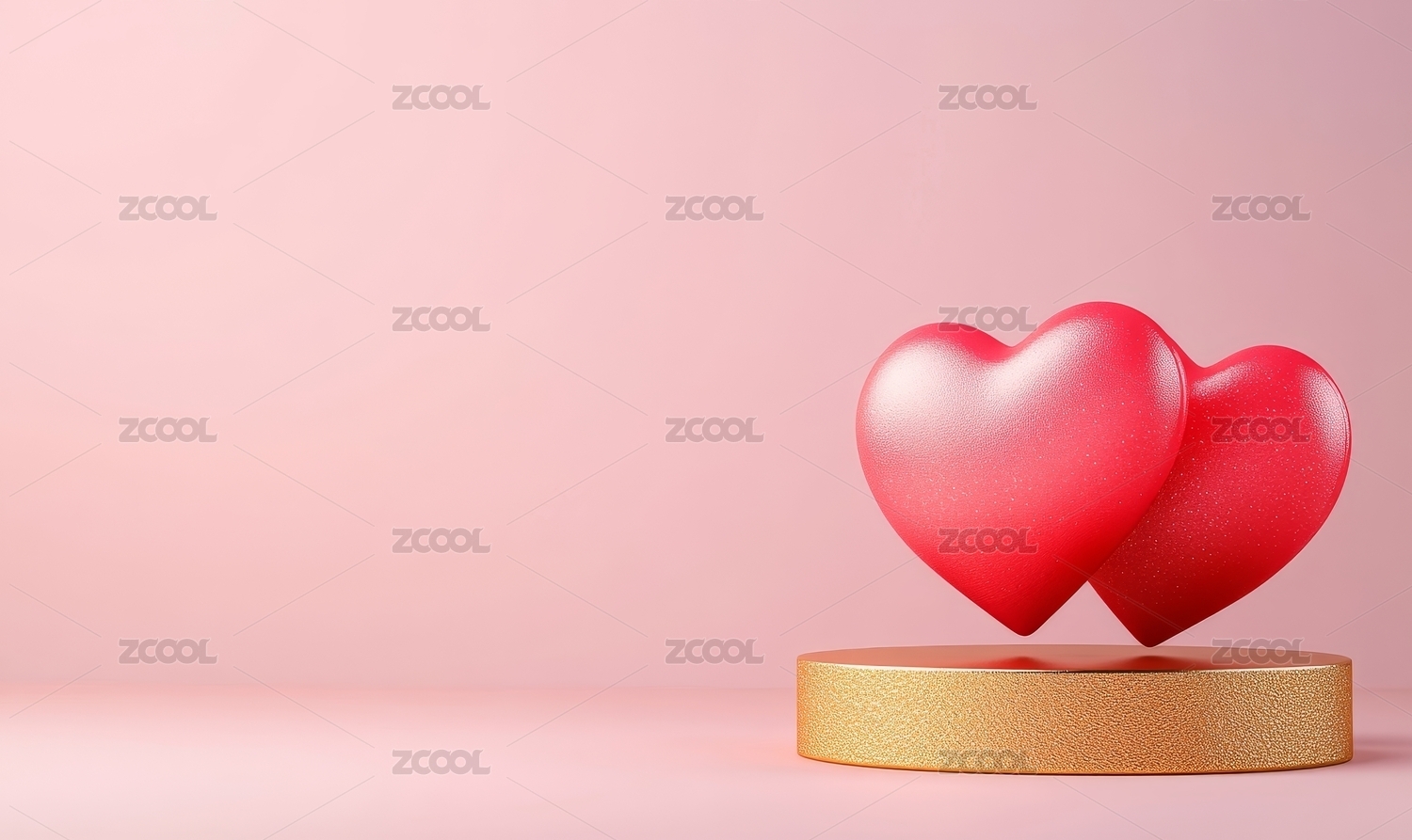 粉色背景金色圆台爱心