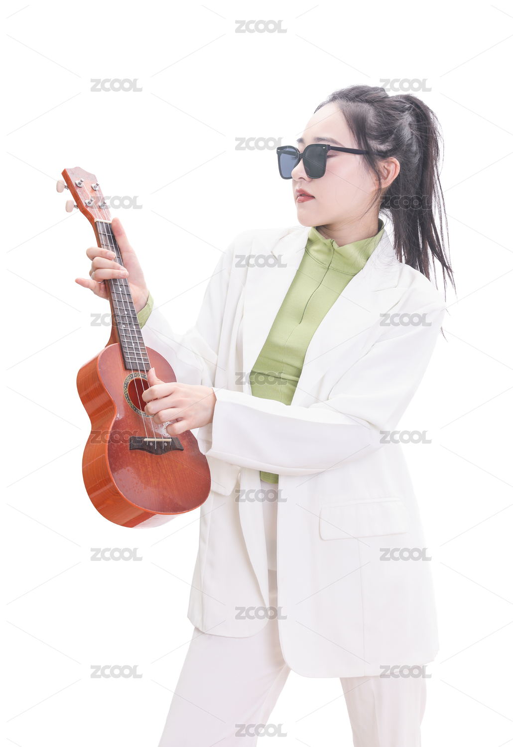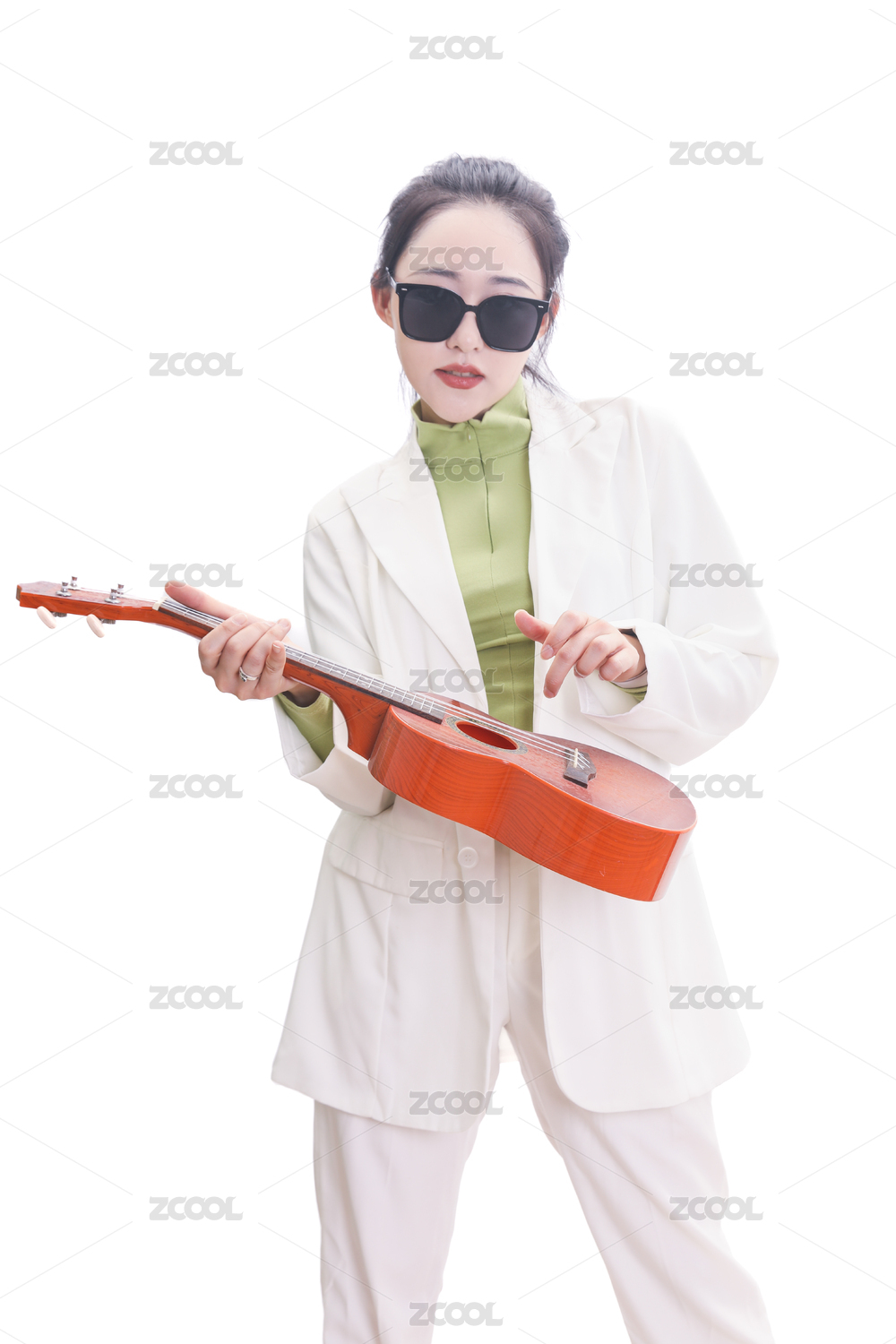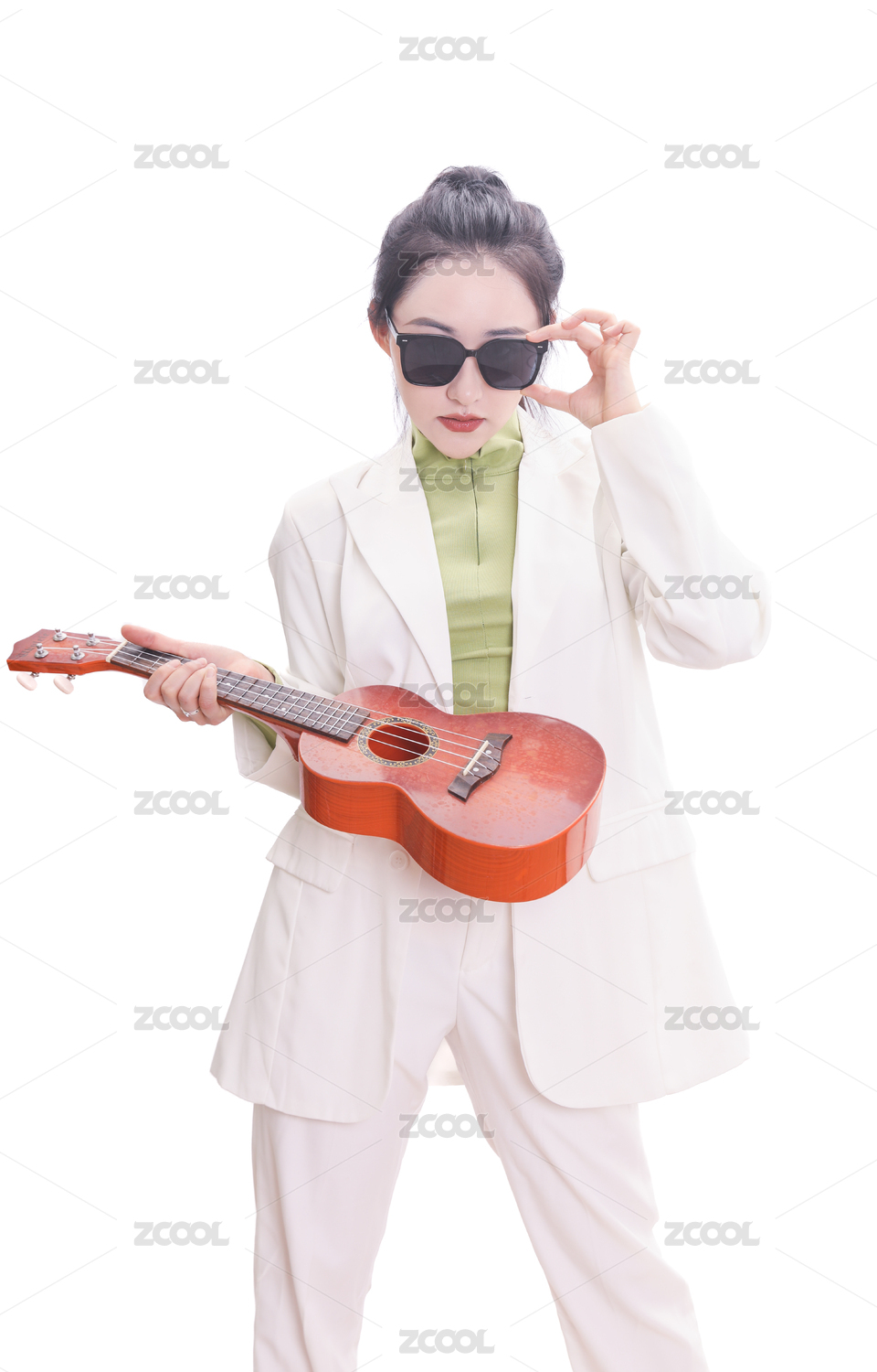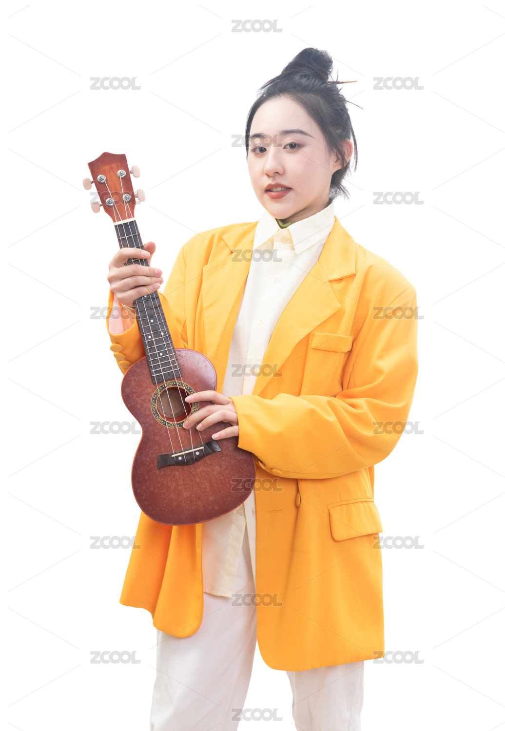穿着时尚拿着尤里克克乐器的东方女性半身肖