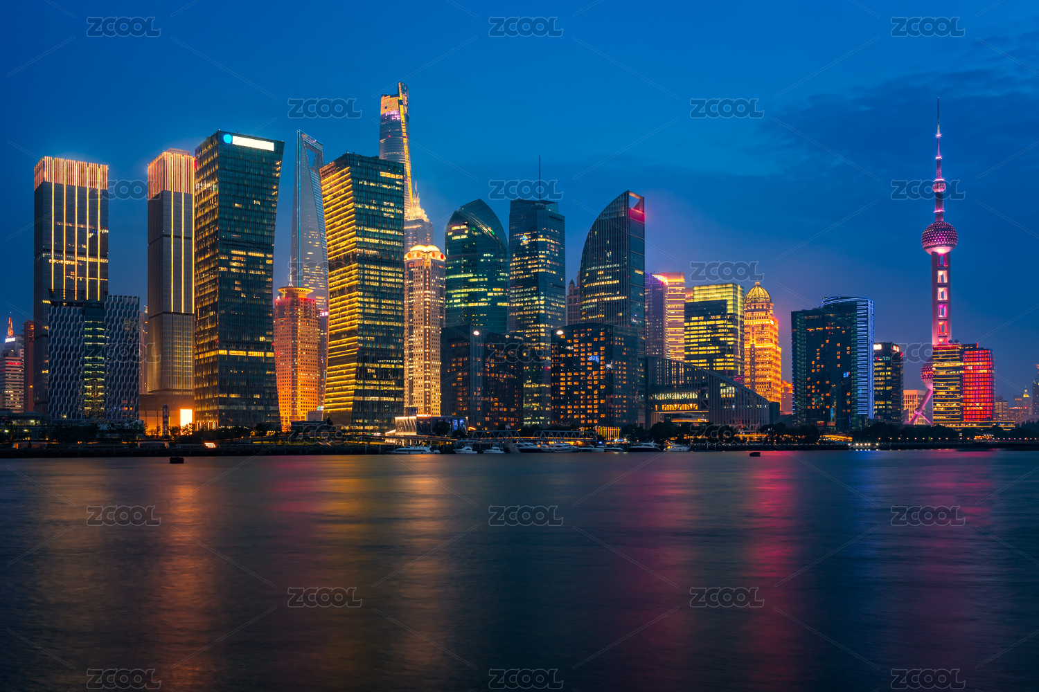 中国上海黄浦江陆家嘴的CBD地标建筑夜景