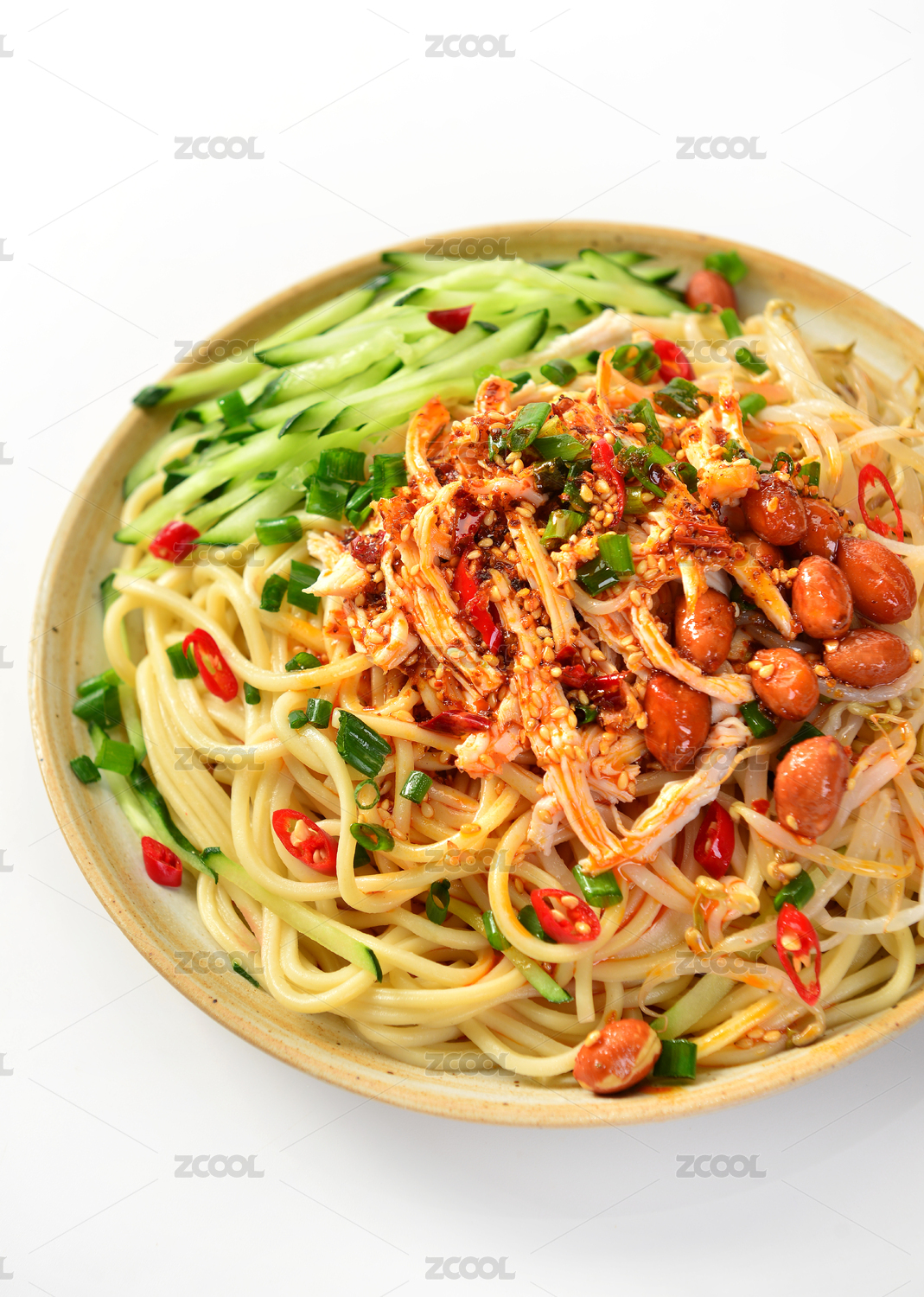 凉面,小吃,美食,中式,食物,凉拌,凉拌食品,花生,腌制萝卜,辣椒酱