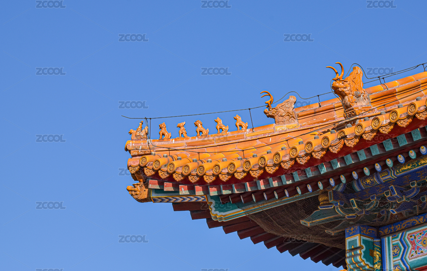 中国北京故宫东方古代建筑屋檐上的脊兽