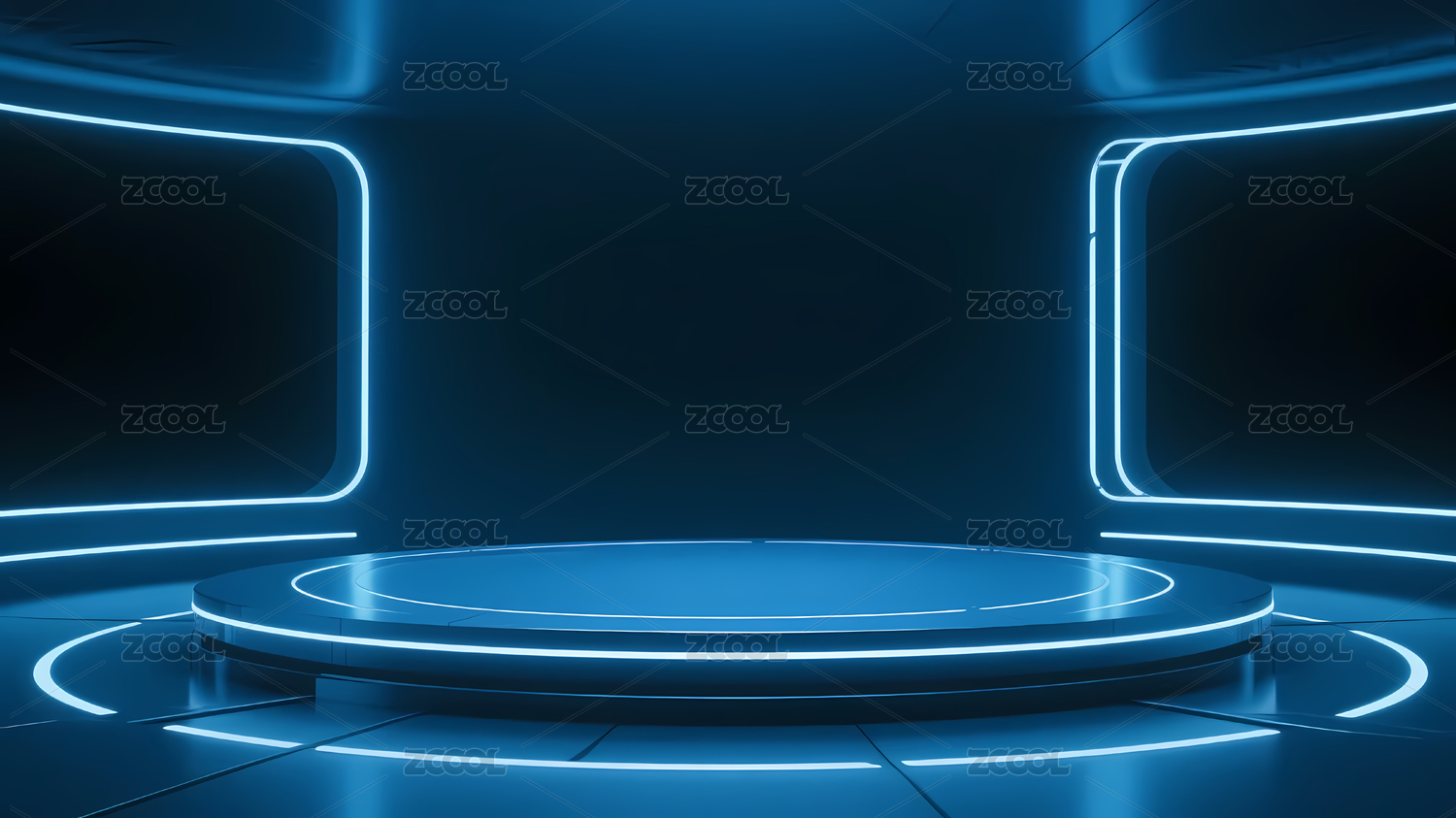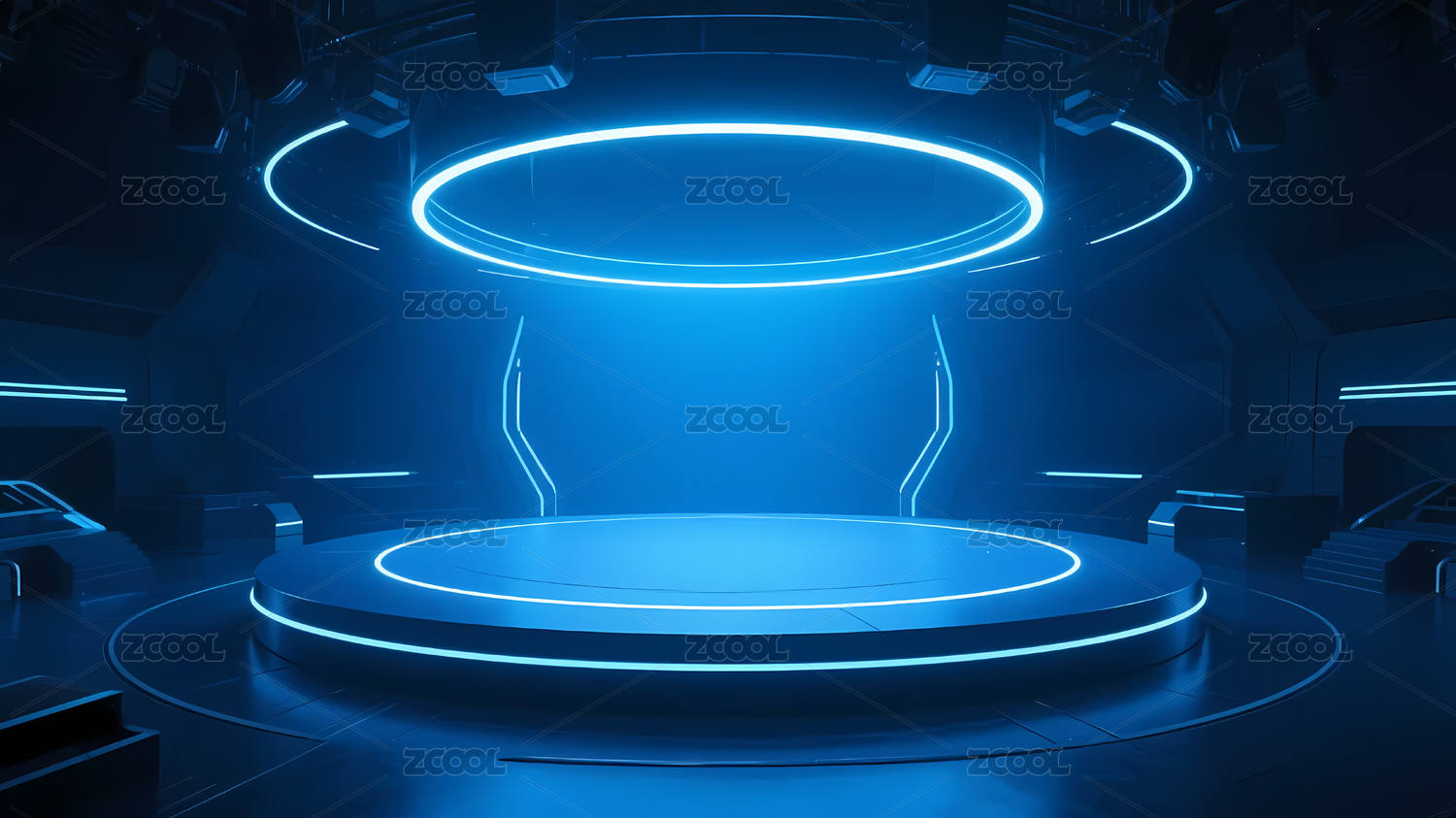 蓝色光环环绕的科技舞台