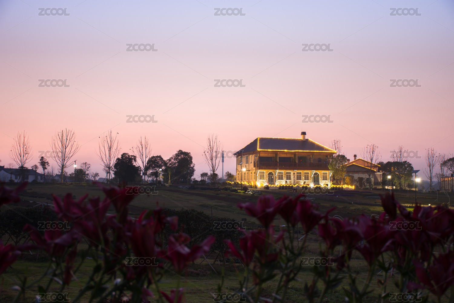 黄昏下的欧式复古小镇