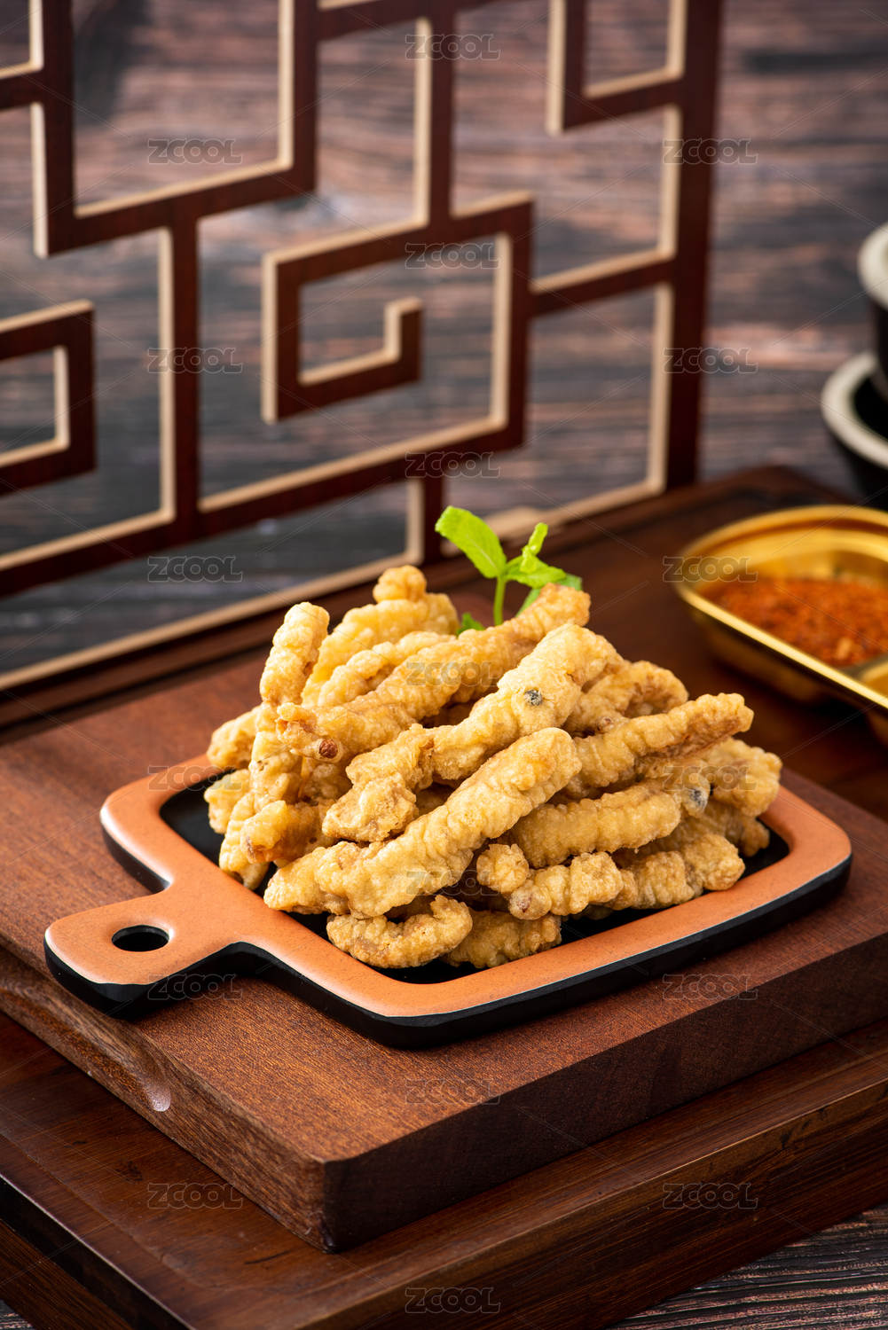 放在木桌上的成都美食一盘小酥肉