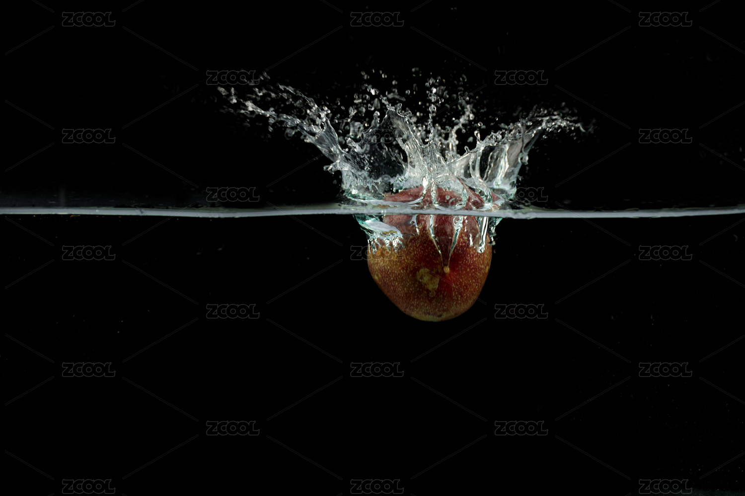 一颗掉落水中的芒果掉落水中激起了水花