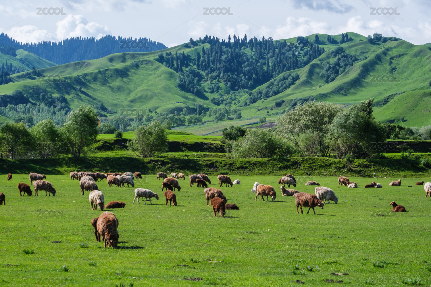中国新疆伊犁那拉提草原牧场绵羊自然风光