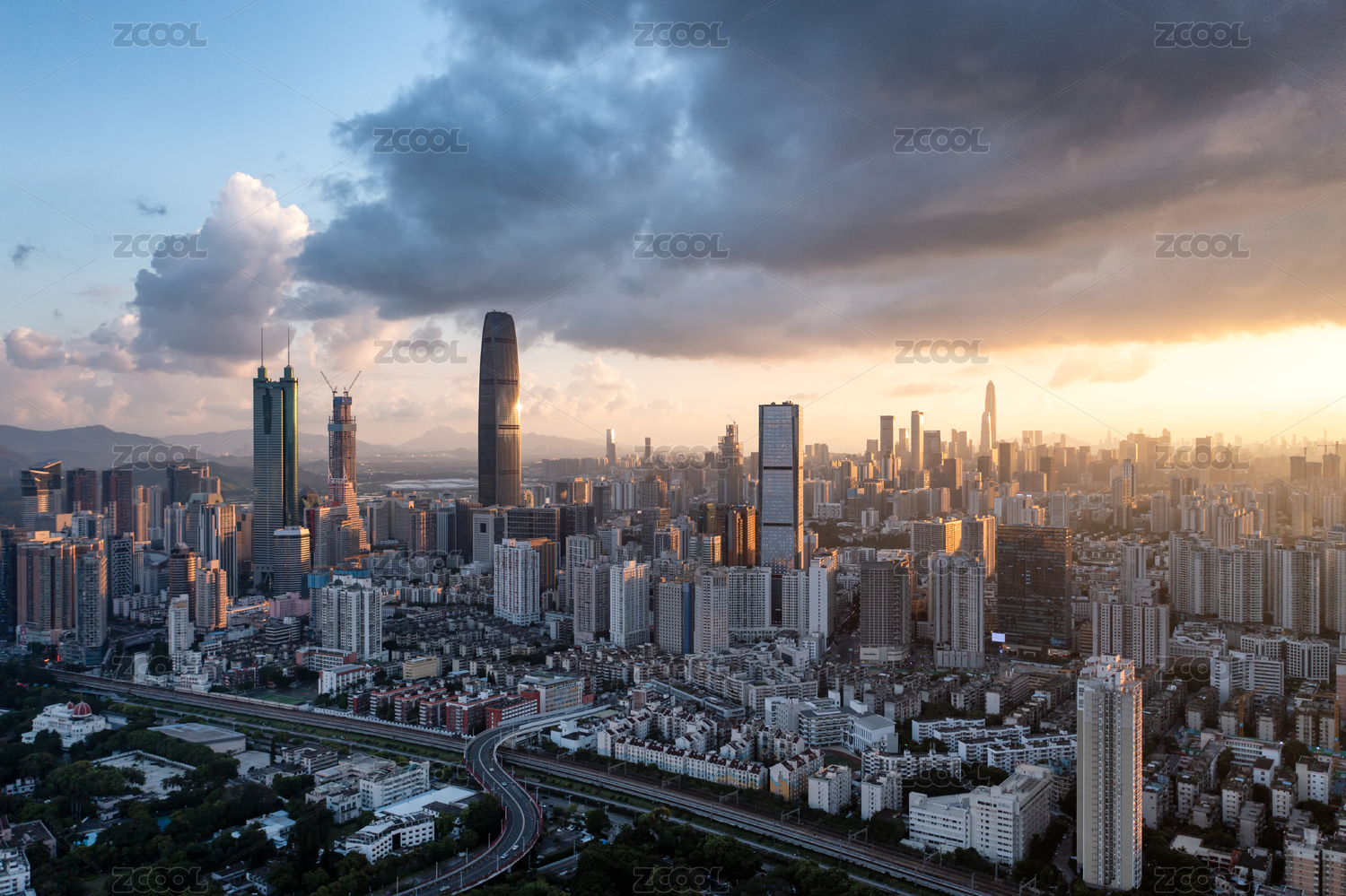 中国深圳市区中心傍晚时分