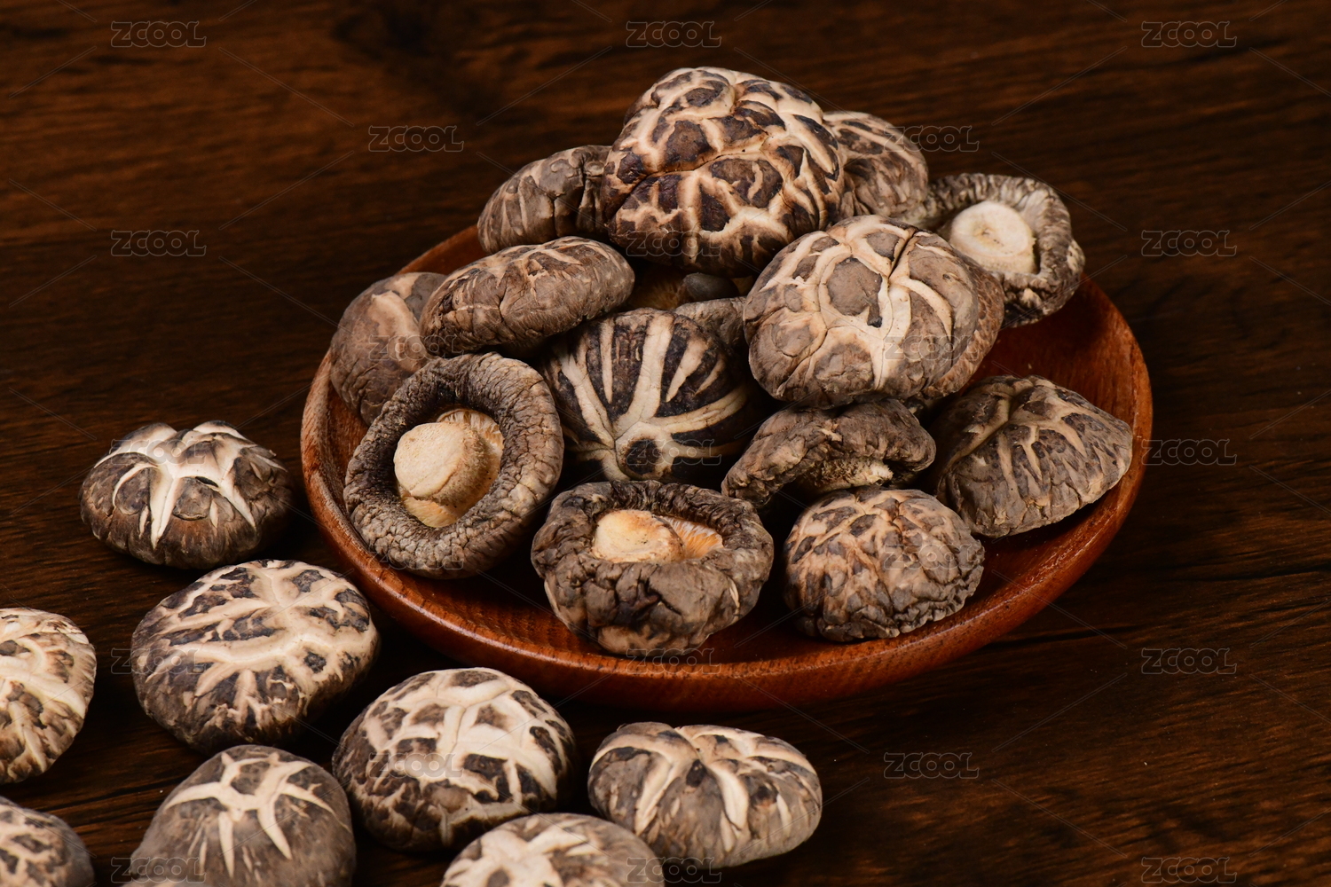 盘子上的花菇香菇干货