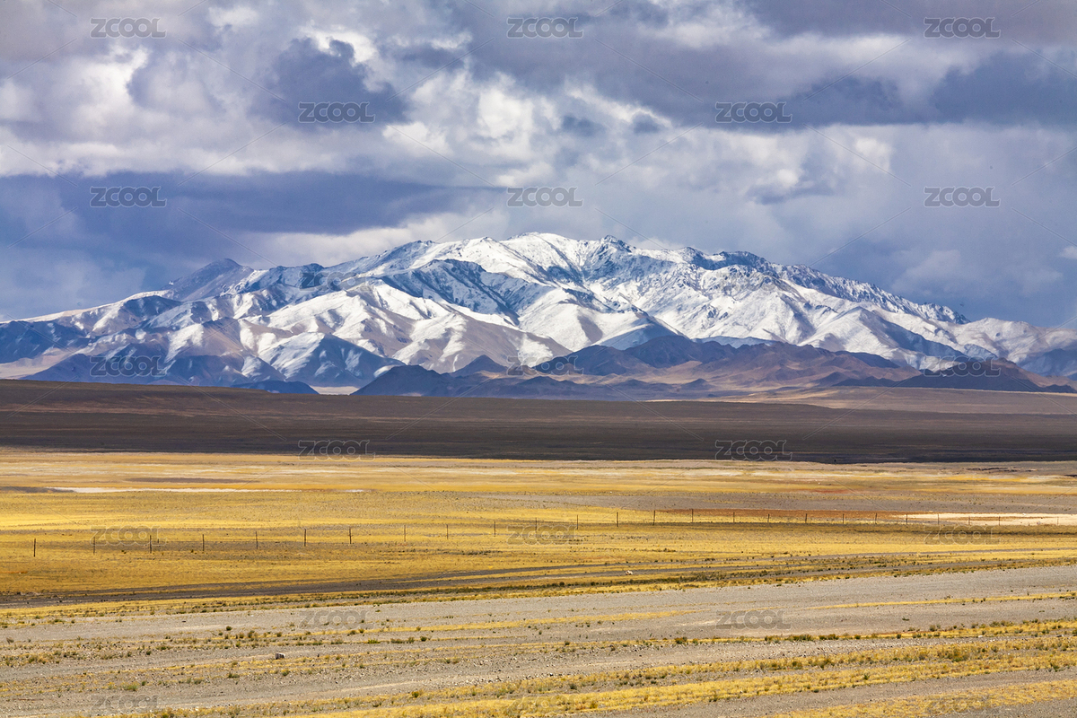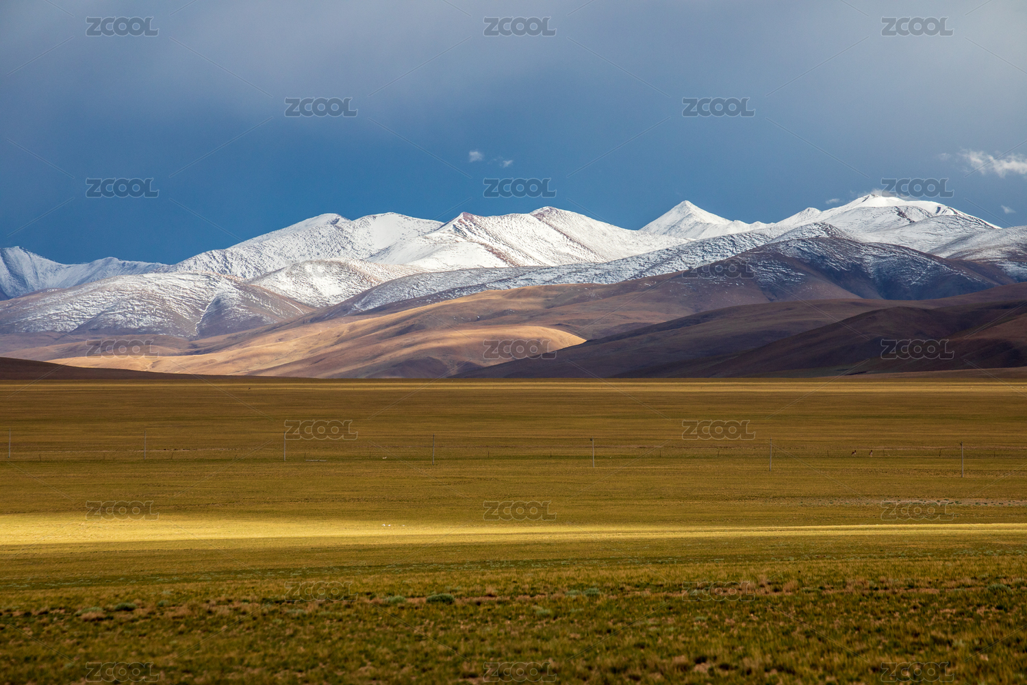 中国西藏阿里暴风雪来临前的雪山草原风光