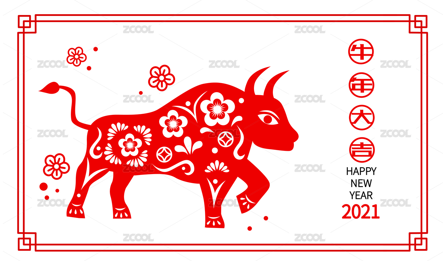 牛年,剪纸,春节,新年,元旦,新春,佳节,2021,2021年,节日