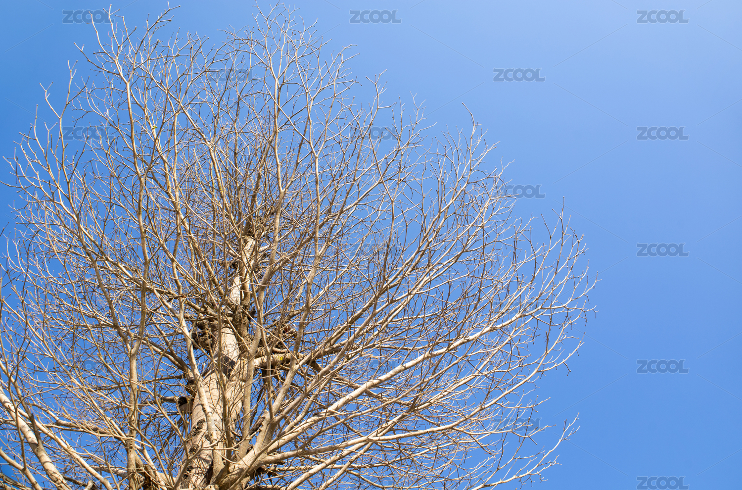 蓝天下的枯树枝