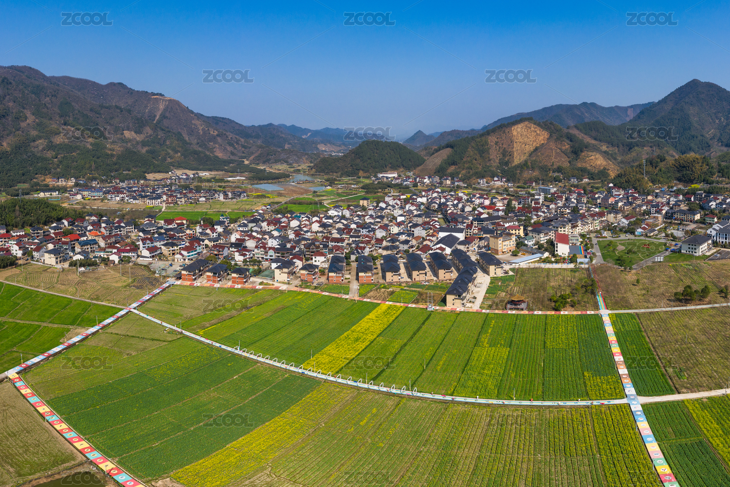 合村乡,杭州,桐庐,油菜花,航拍视角,田野,美丽乡村,花海,田园,自然
