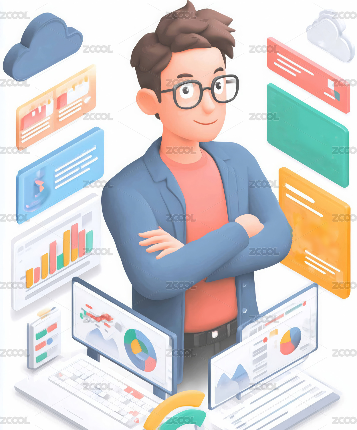 卡通,3D,模型,人物,插画,科技,职业,工作,男性,办公