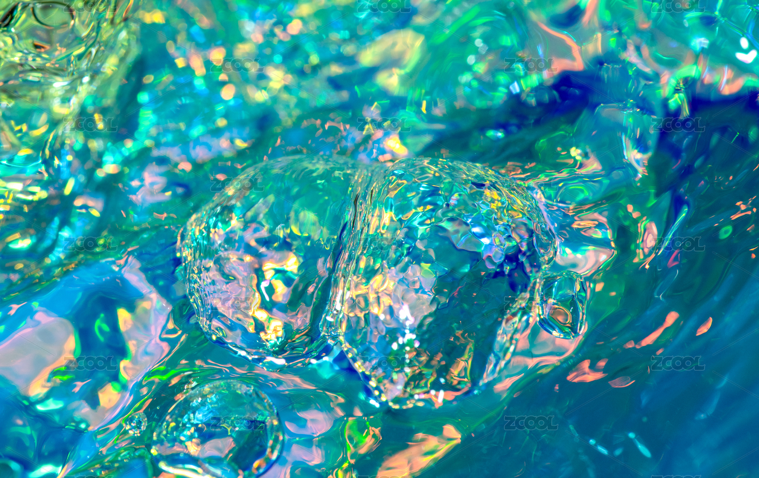 彩色灯光照射冰块