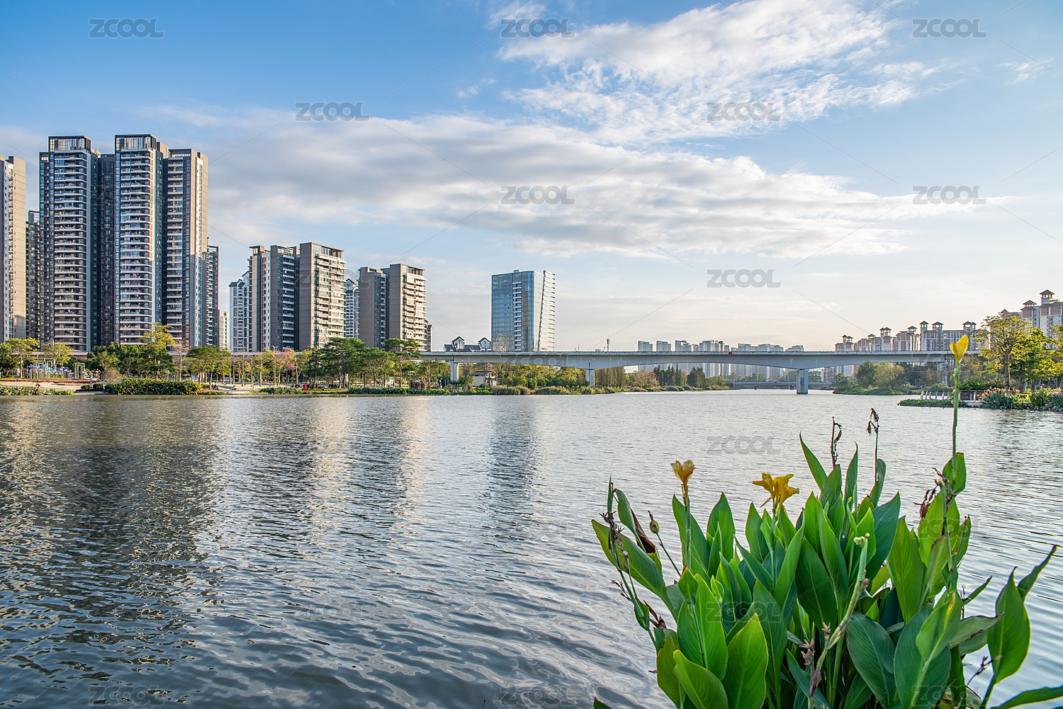 广州南沙环境优美的湖景楼盘住宅区