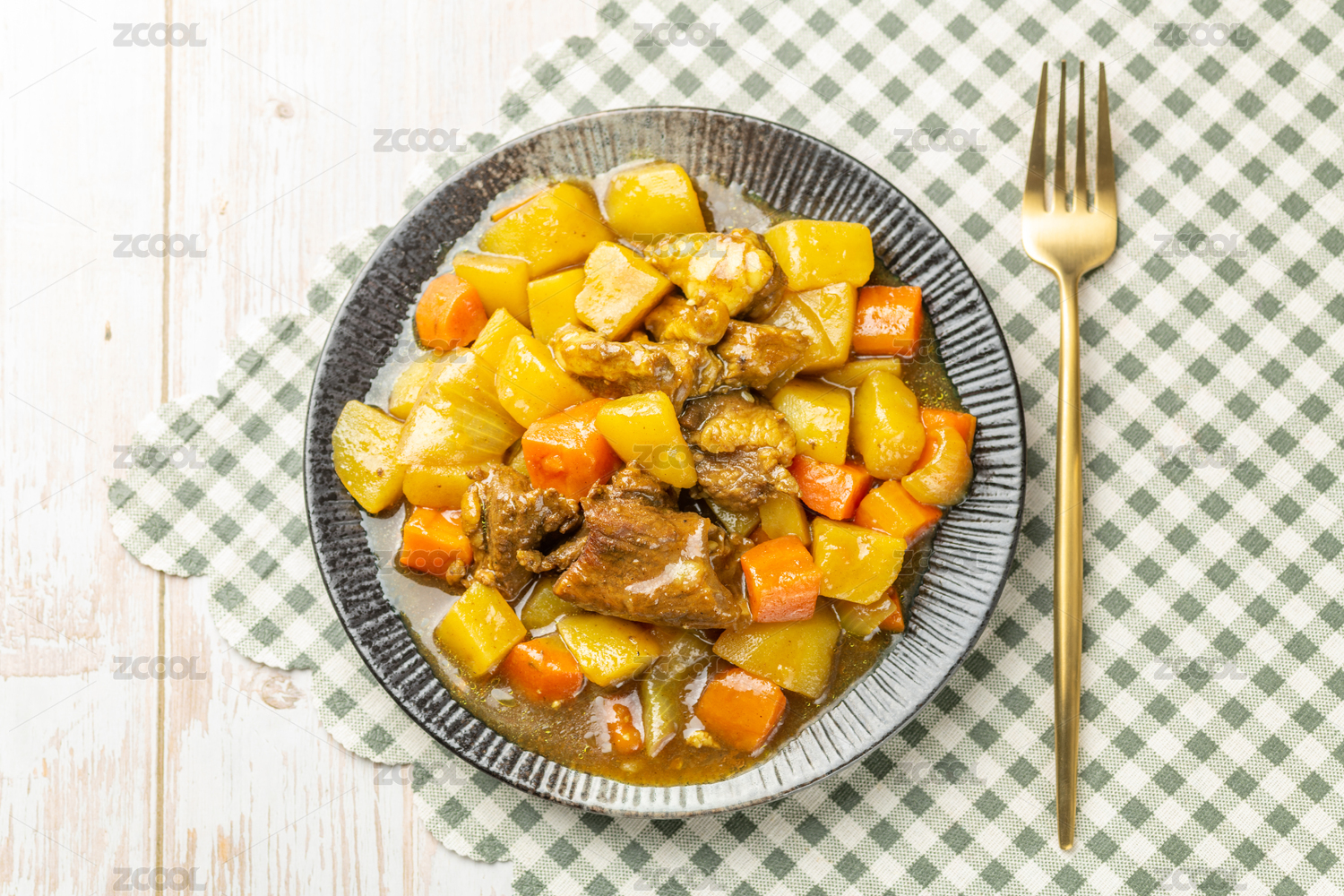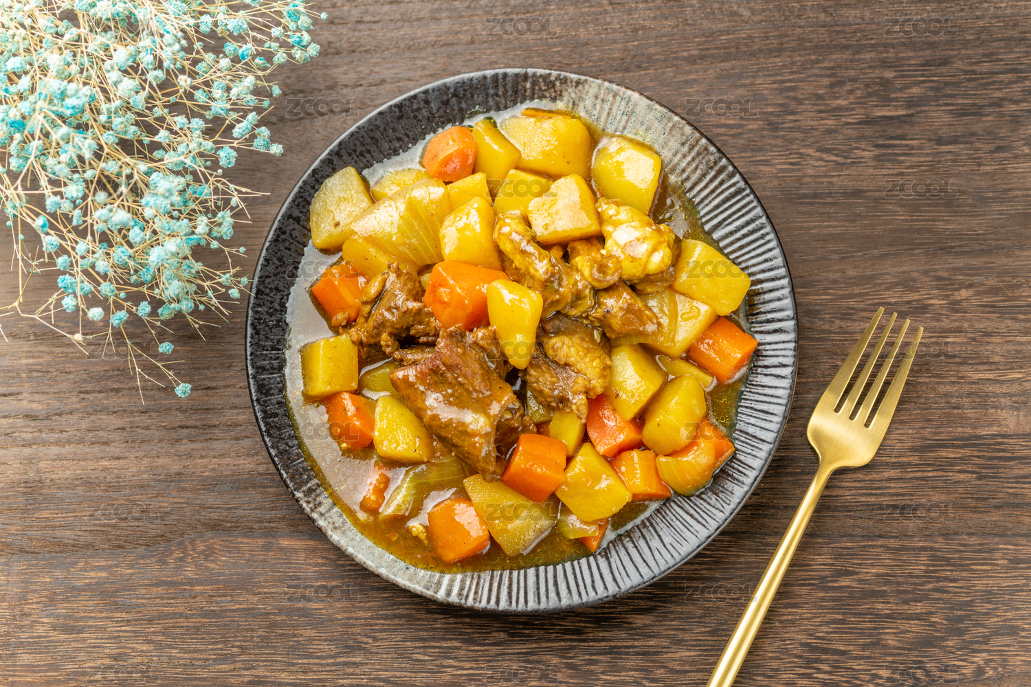 一盘咖喱牛肉特写