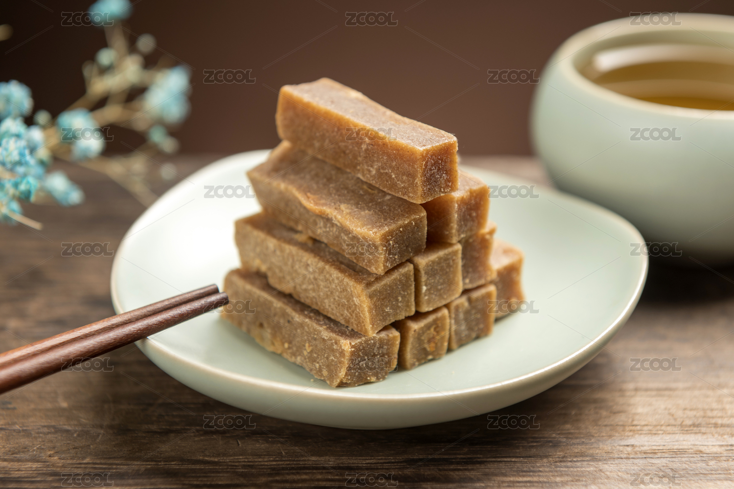 桌面上的木纹盘子里的美味可口的酵素山楂