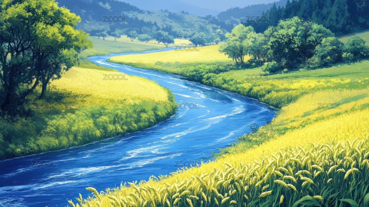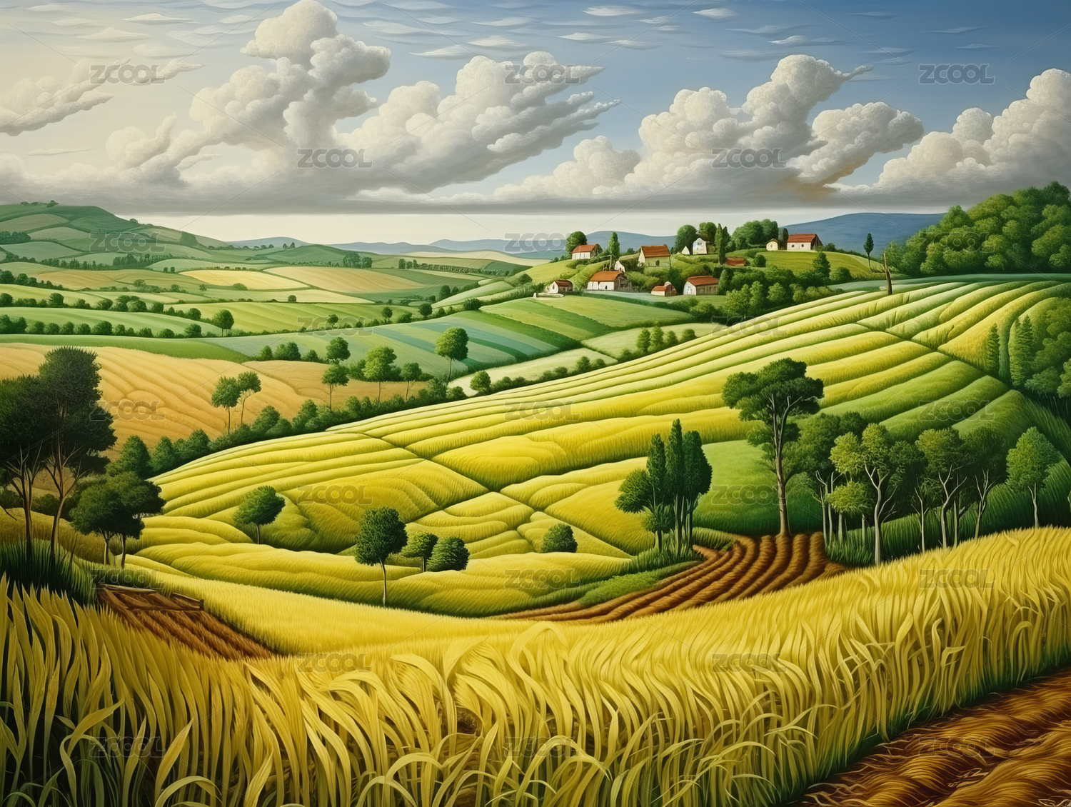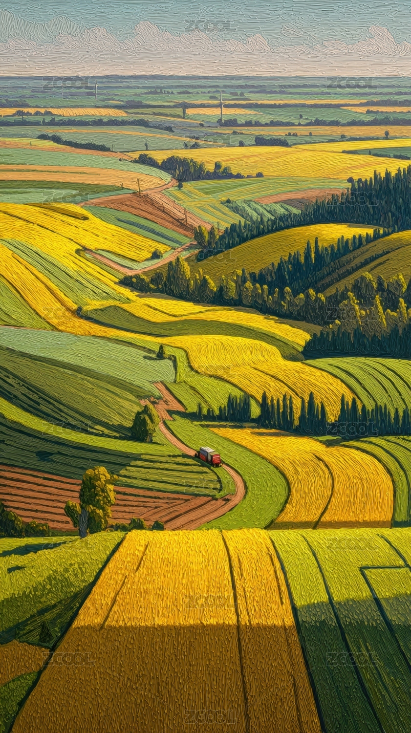 风景优美的农村风光插画