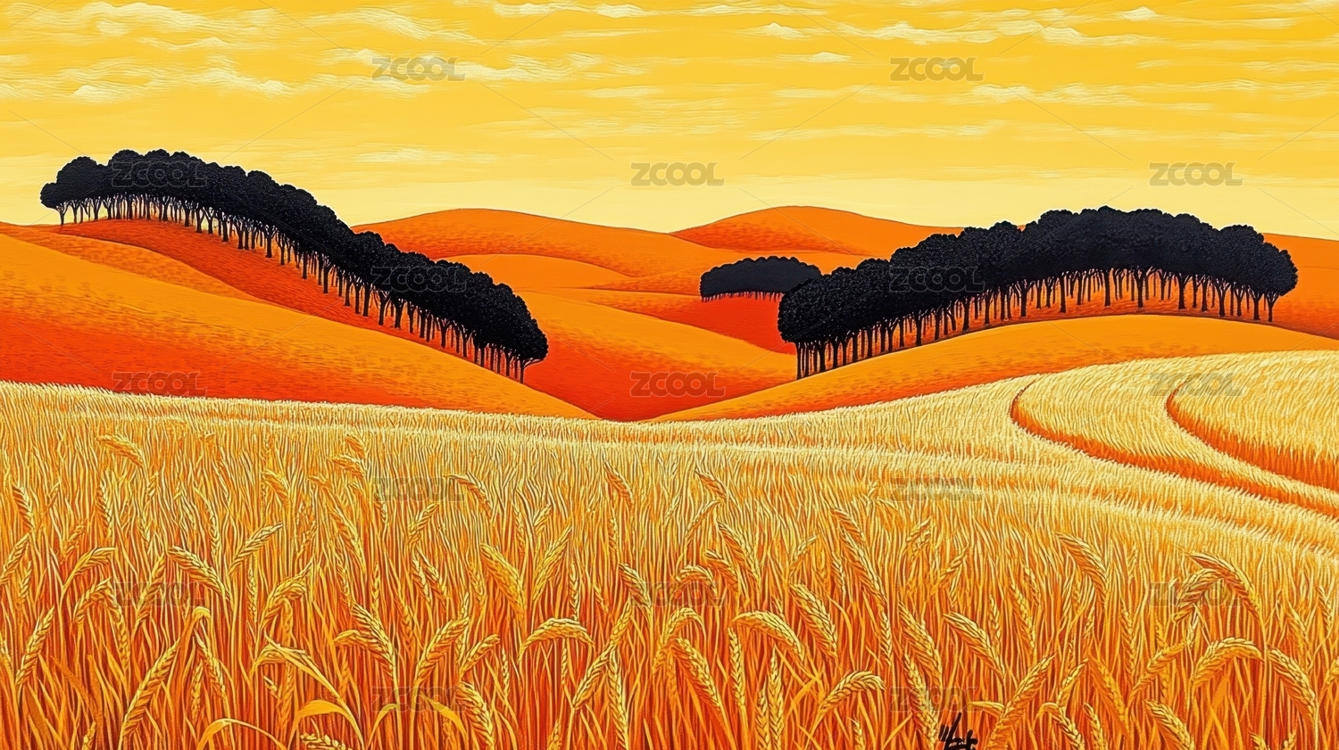 远山和田野插画海报背景