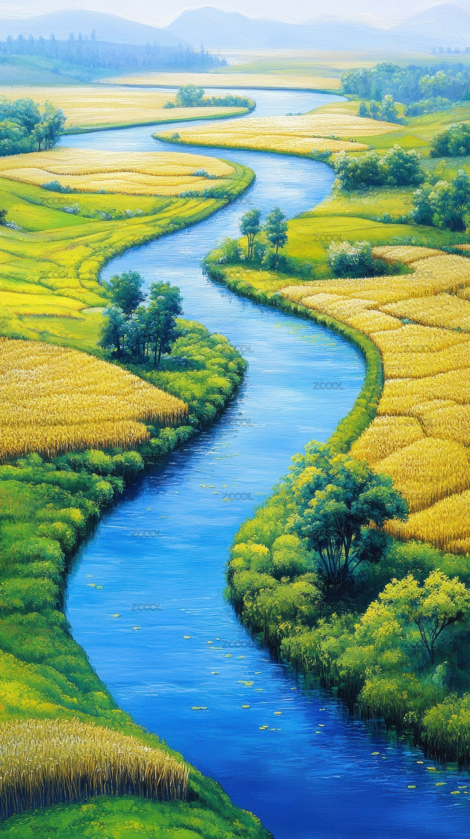 蜿蜒河流穿梭田野