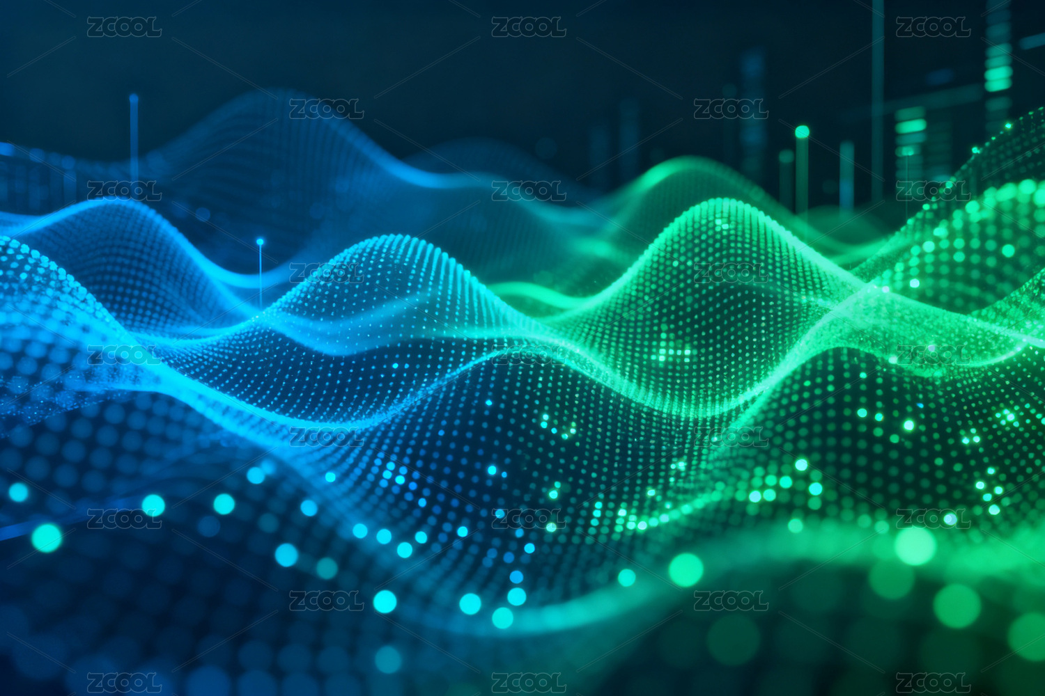 蓝绿色科技感数据波浪背景