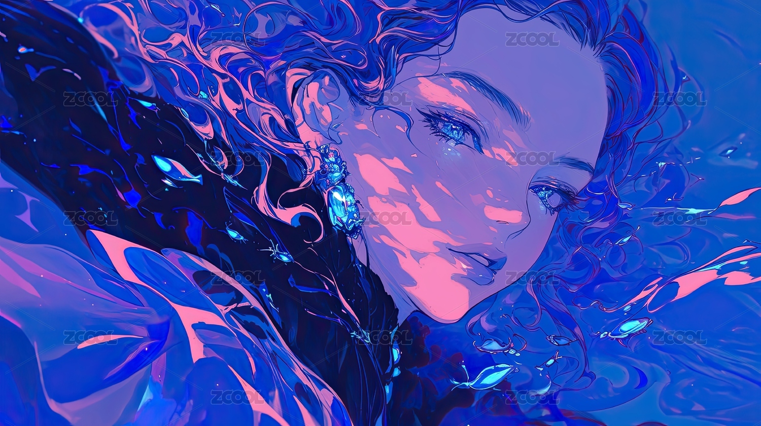 AIGCFG,赛博,朋克,未来感,虚拟,形象,头像,霓虹灯,女孩,女子