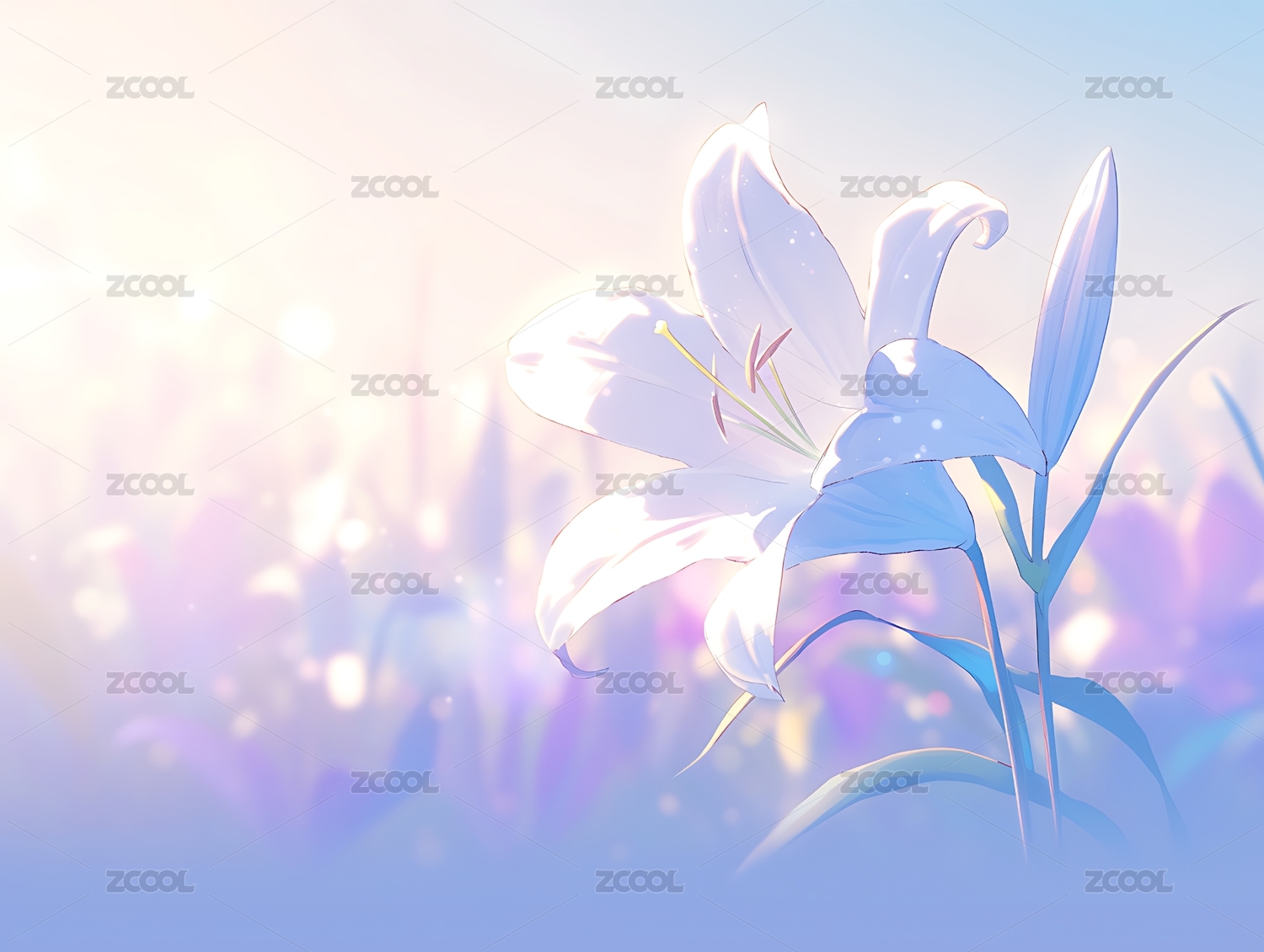 白百合花丛新海诚治愈系日漫风插画