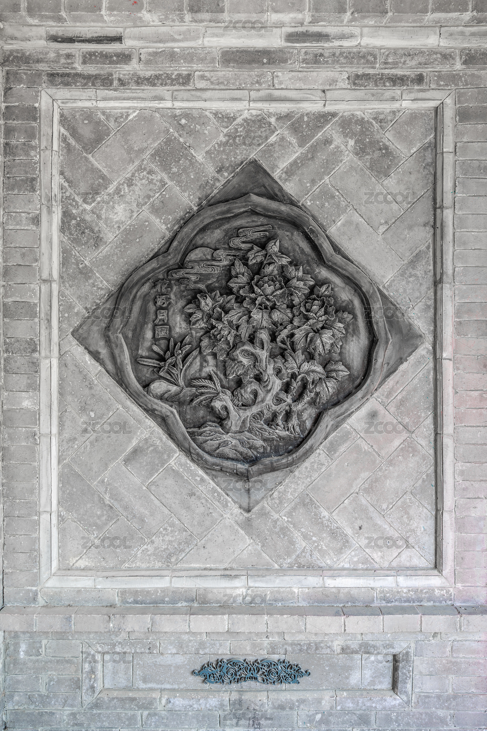 山西省晋中市常家庄园山水图砖雕照壁墙