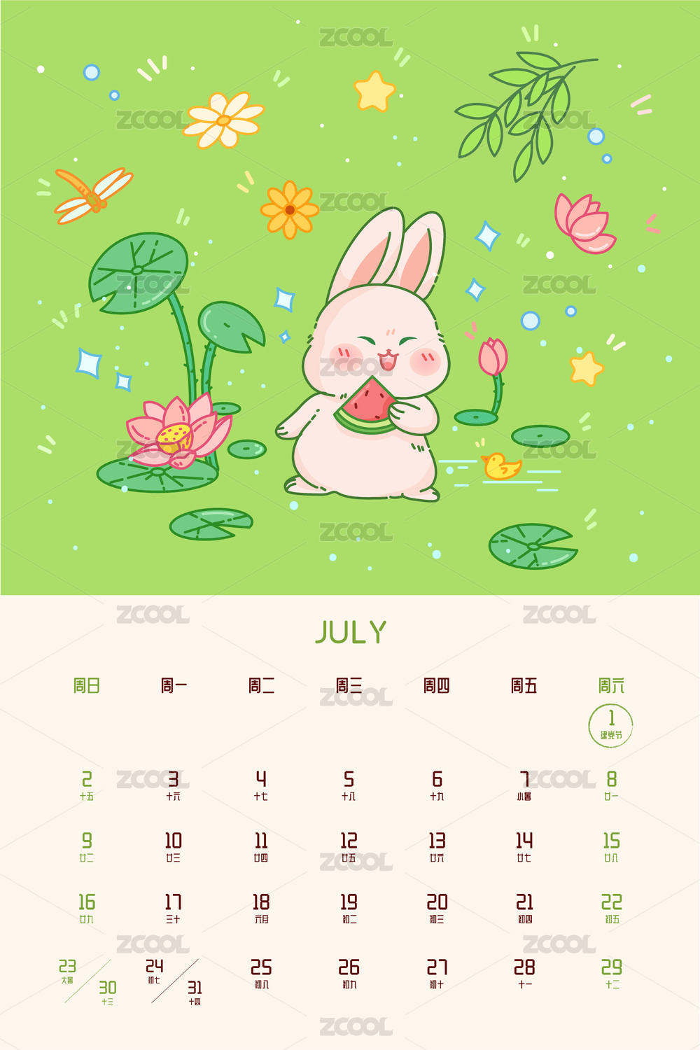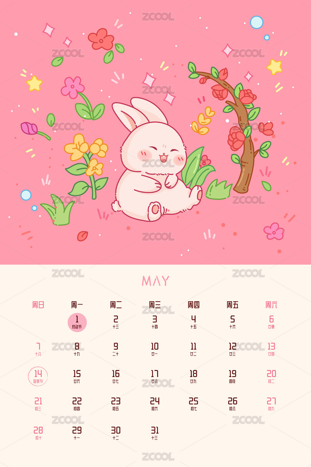 可爱,小清新,兔子,兔年,新年,2023,日历,动物,彩色,扁平