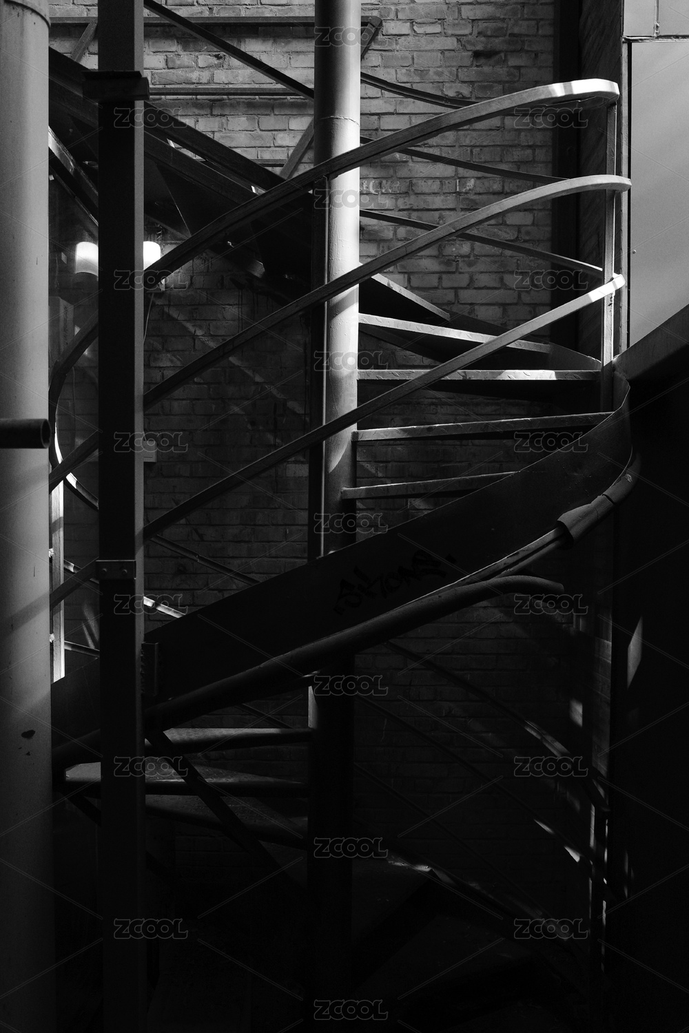 昏暗楼梯间的光影交错