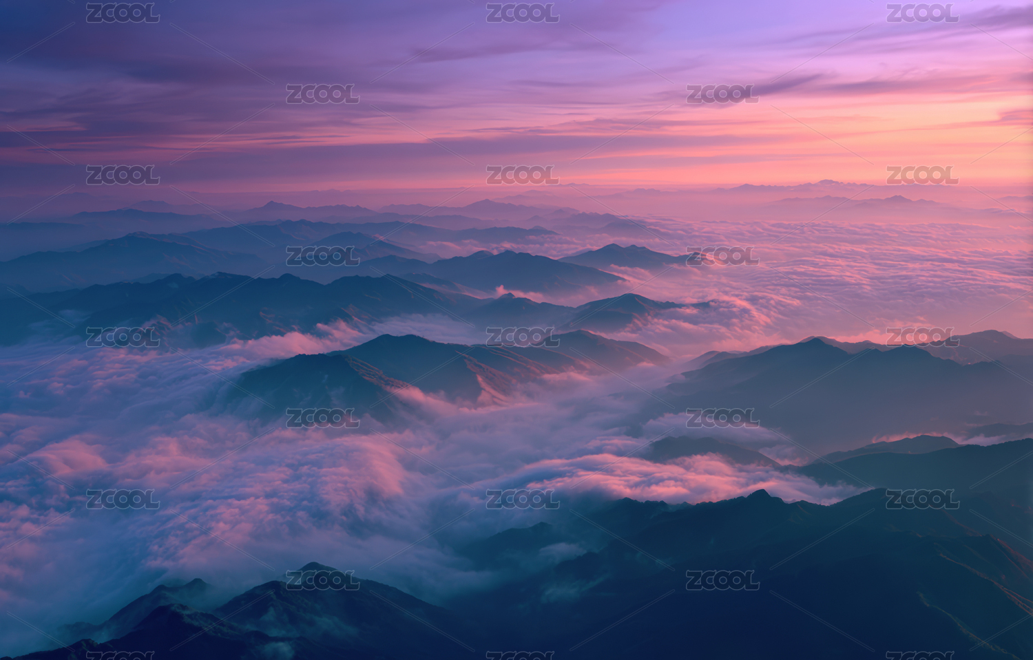 鸟瞰云海中的莽莽群山