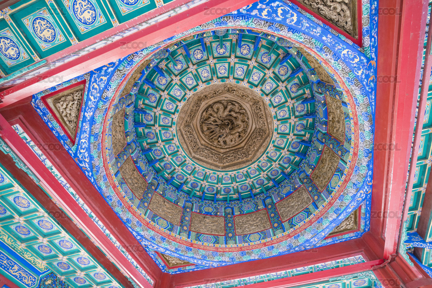 广东番禺莲花山大雄宝殿建筑室内屋顶仰视