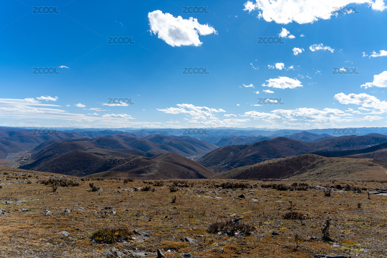 四川西部甘孜新都桥镇鱼子西景区山顶风光航