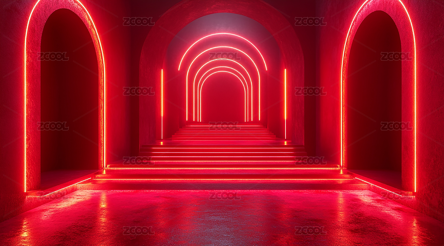 红色隧道内部景观