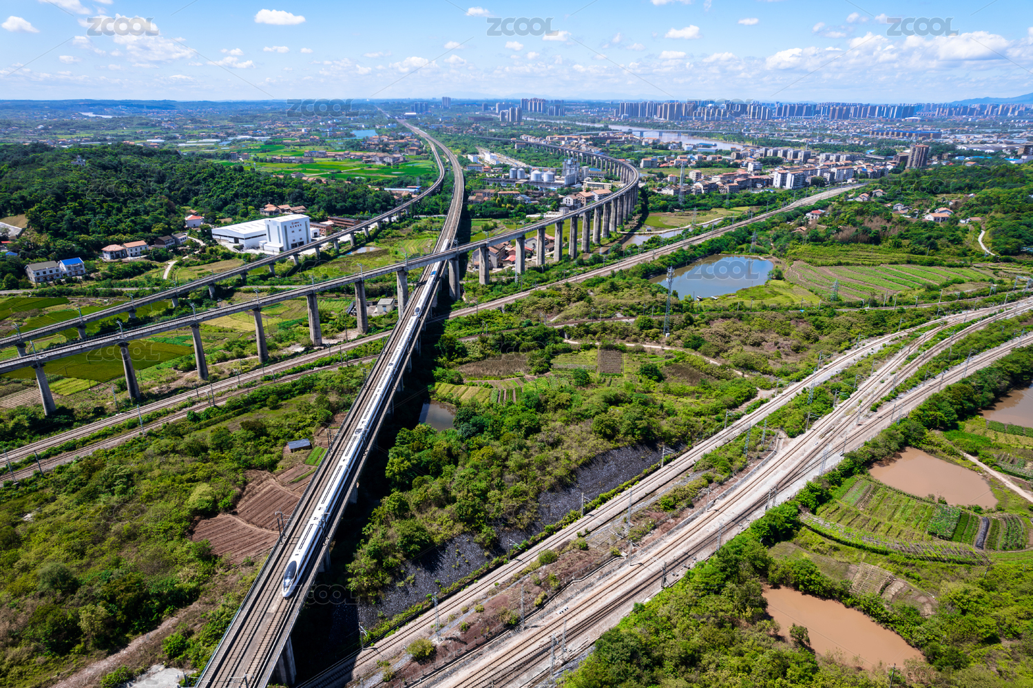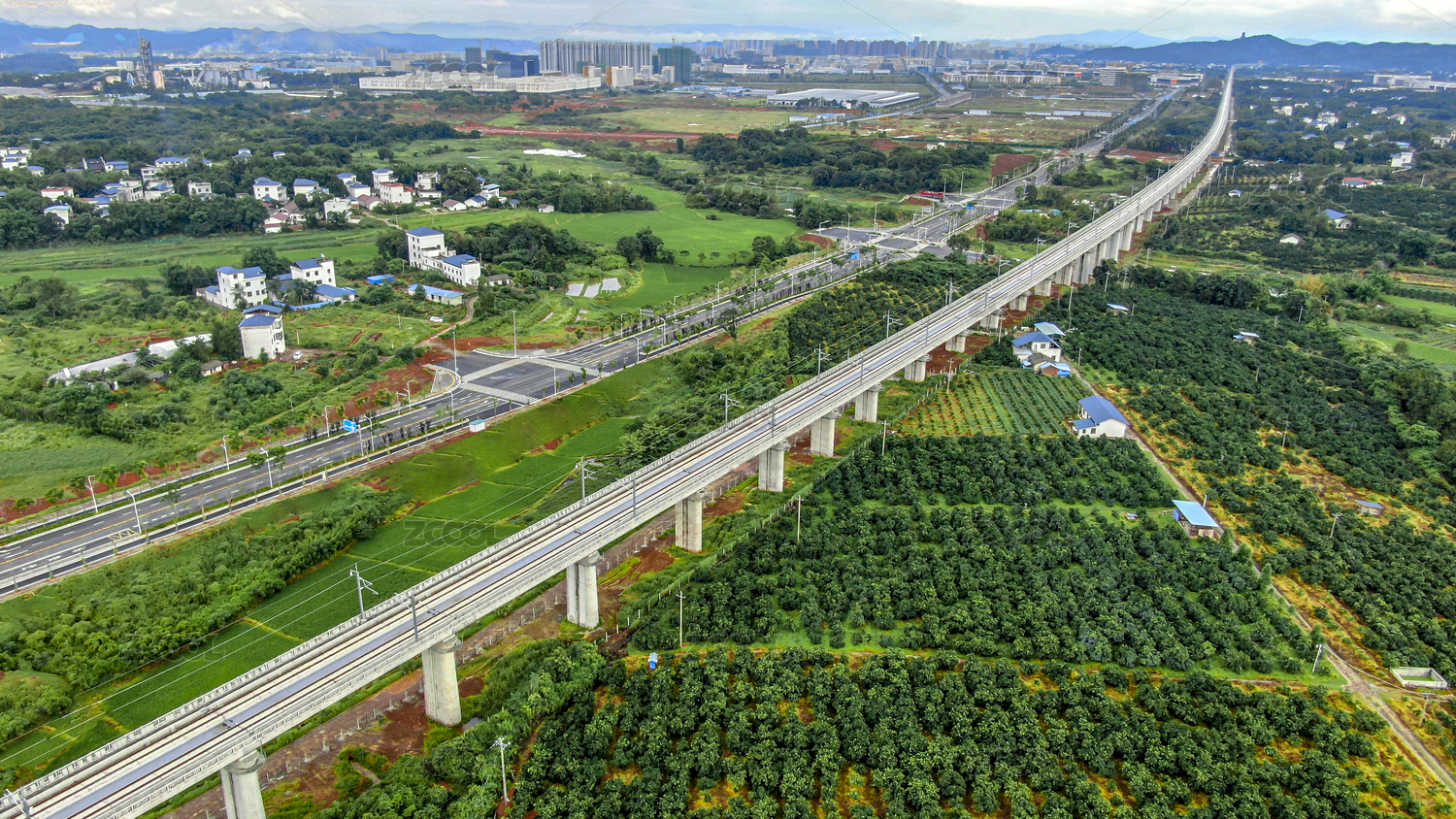 中国湖南衡阳轨道交通高架枢纽交汇航拍
