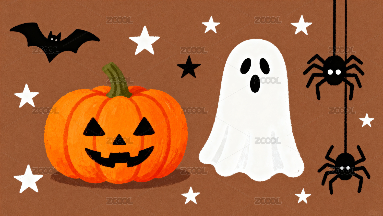 万圣节南瓜幽灵蝙蝠蜘蛛网