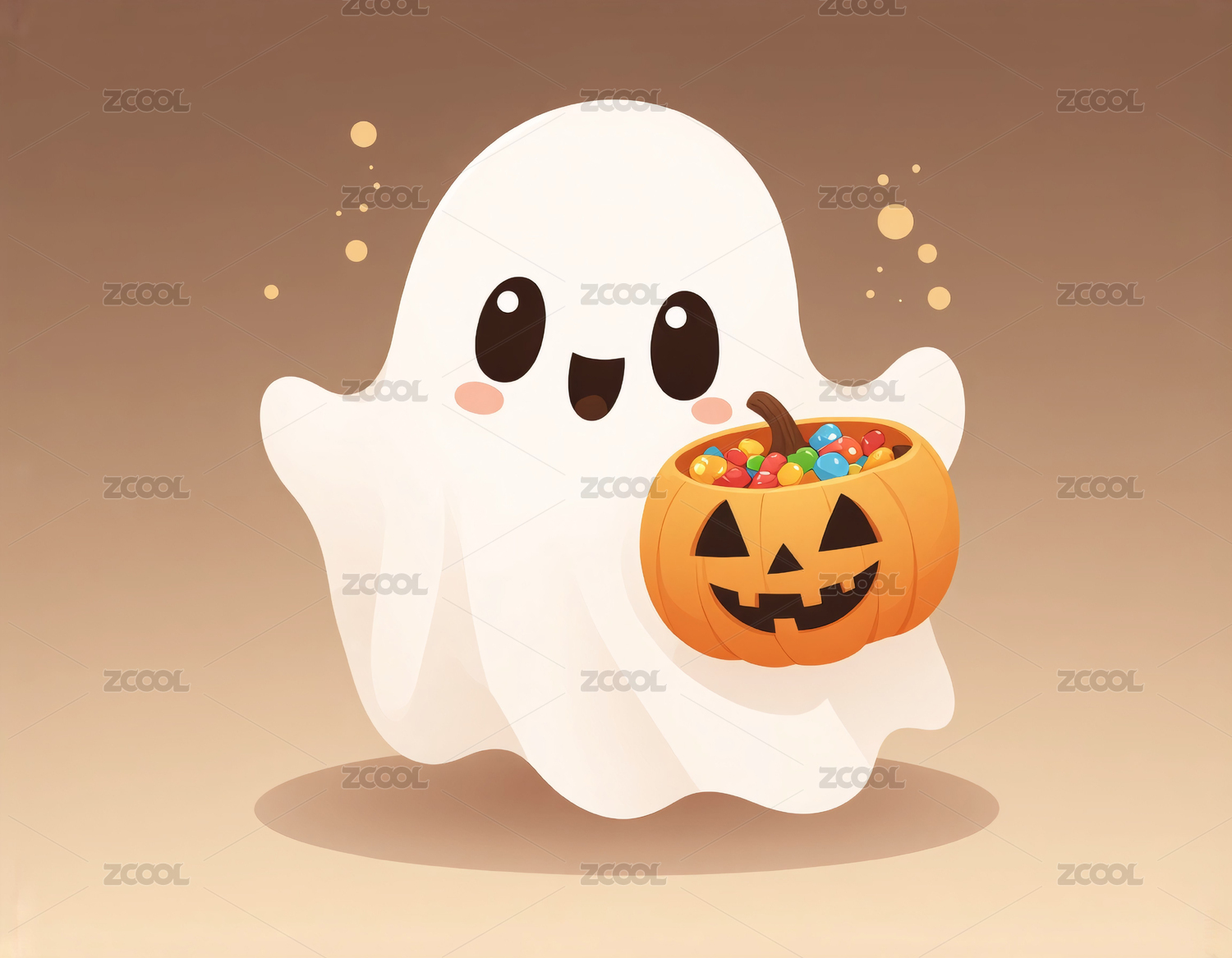 万圣节提着南瓜灯糖果篮子的鬼魂