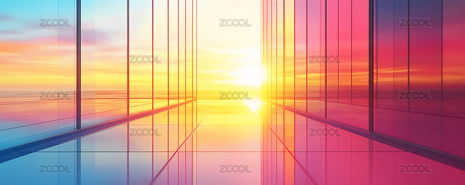 抽象插画风商业写字楼,城市天际线玻璃幕墙