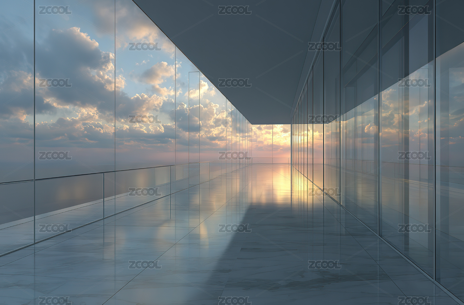宁静,现代,城市,日出,窗户,建筑,景观,办公室,玻璃,反射