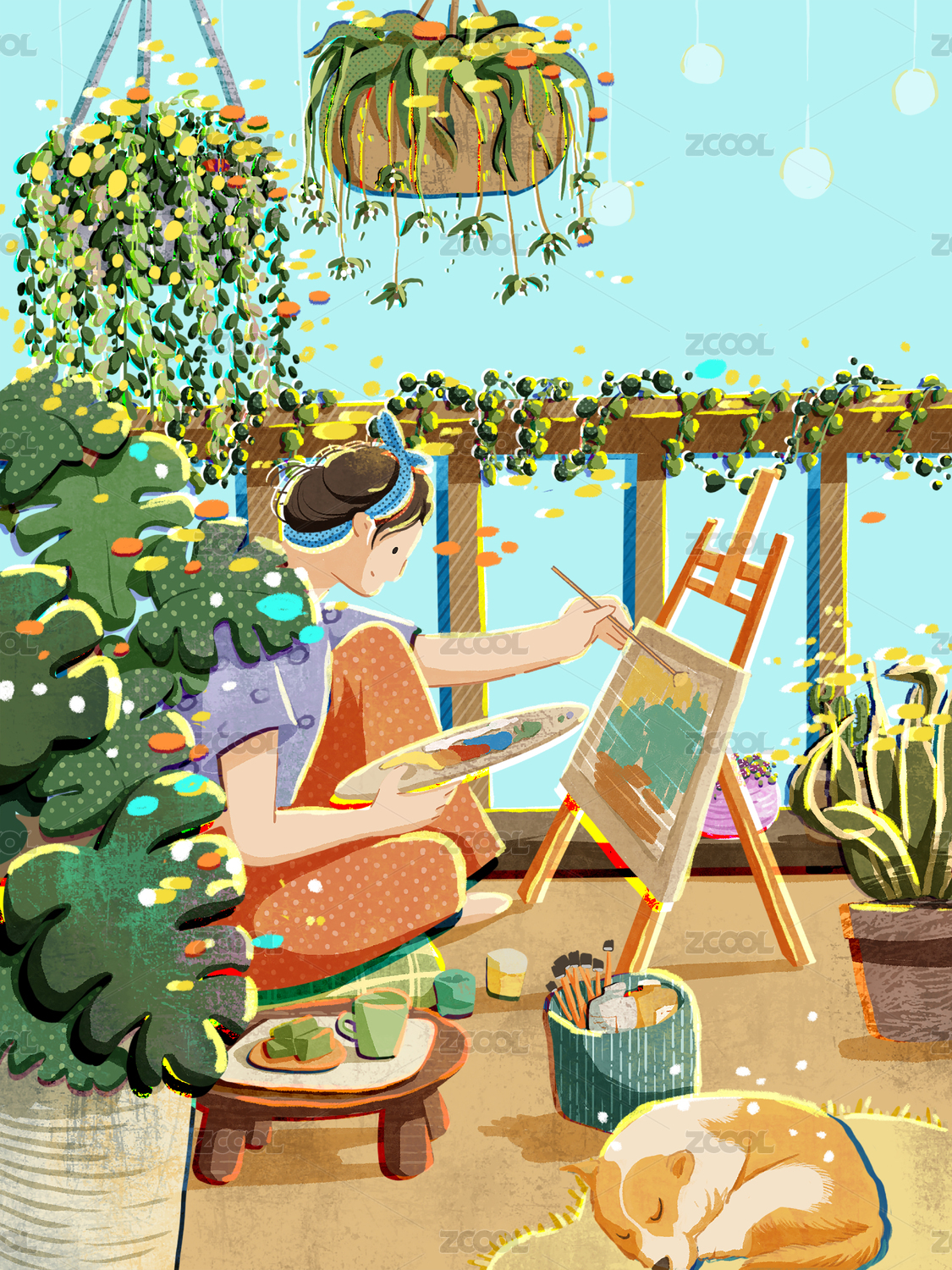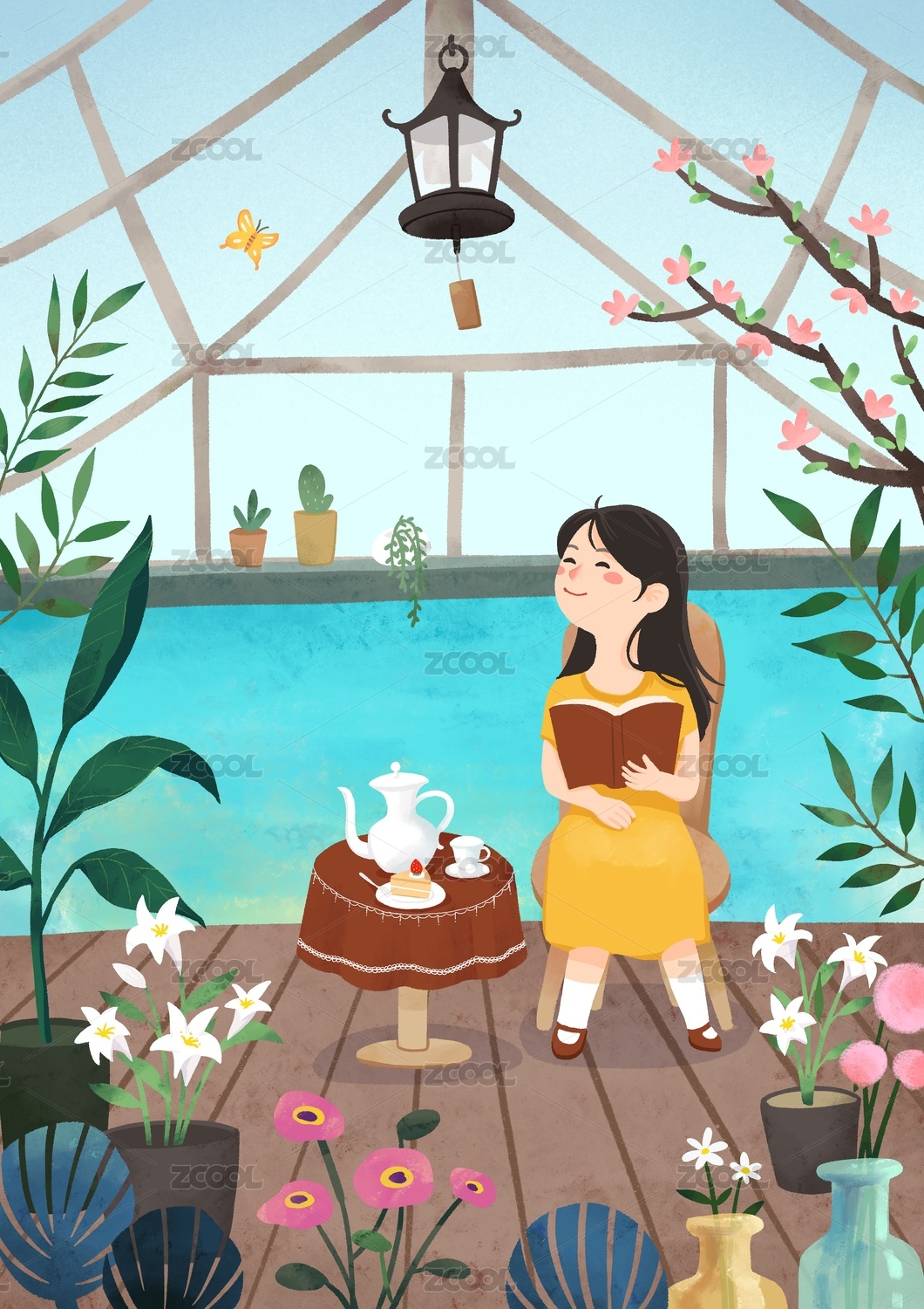 养花,姑娘,阳光房,花花草草,花草,植物,浇花,养花养草,花园,下午茶