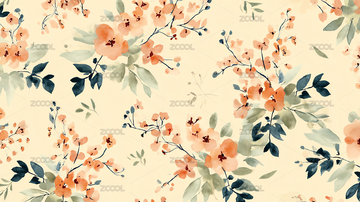 水墨画风格的小碎花图案