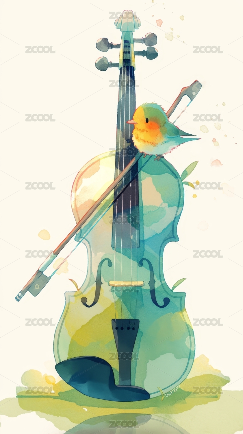 鸟栖小提琴上的琴弓
