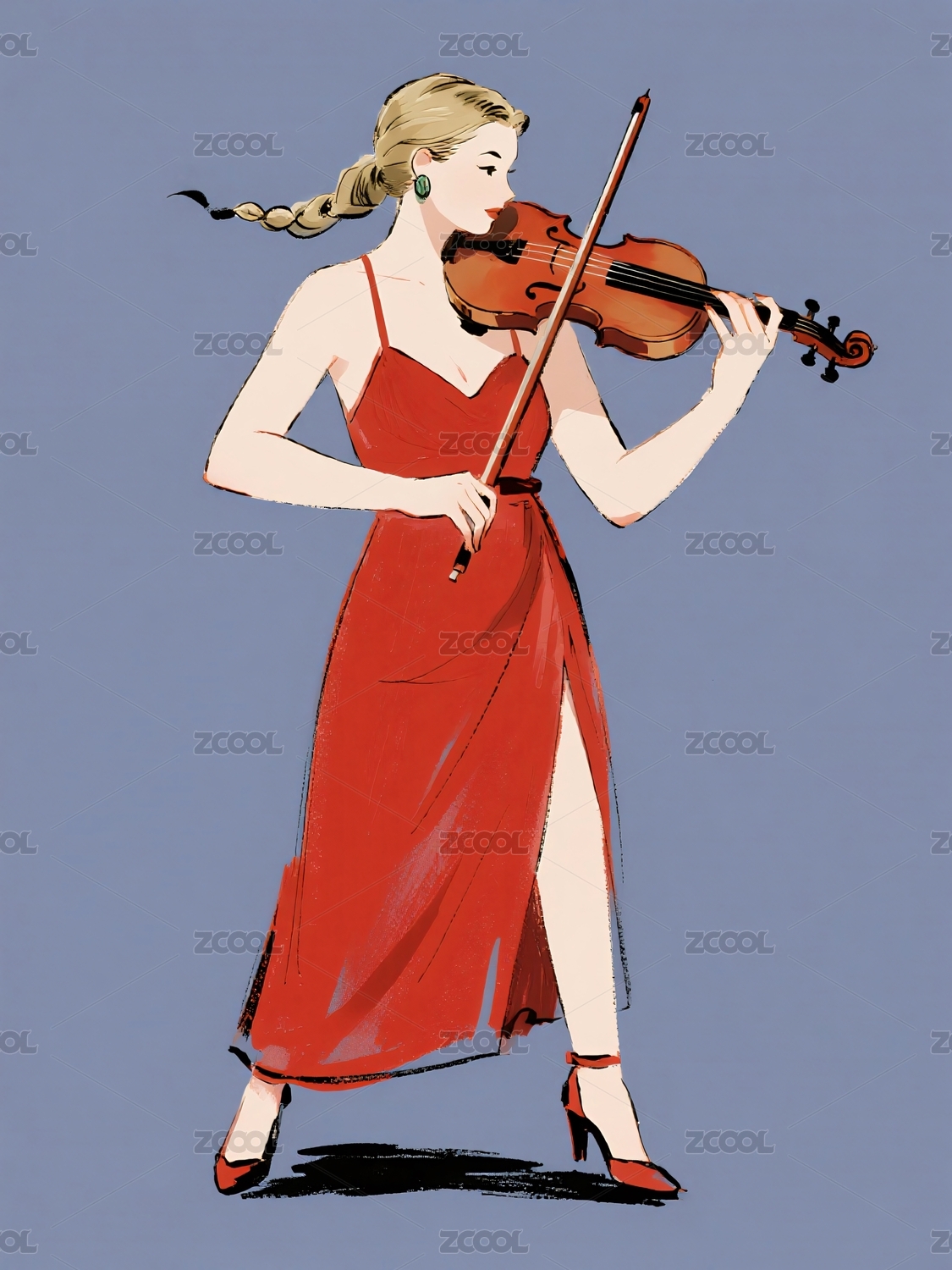 红裙女子演奏小提琴