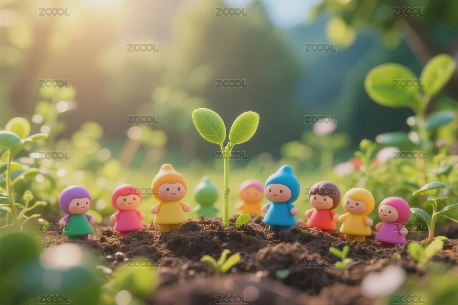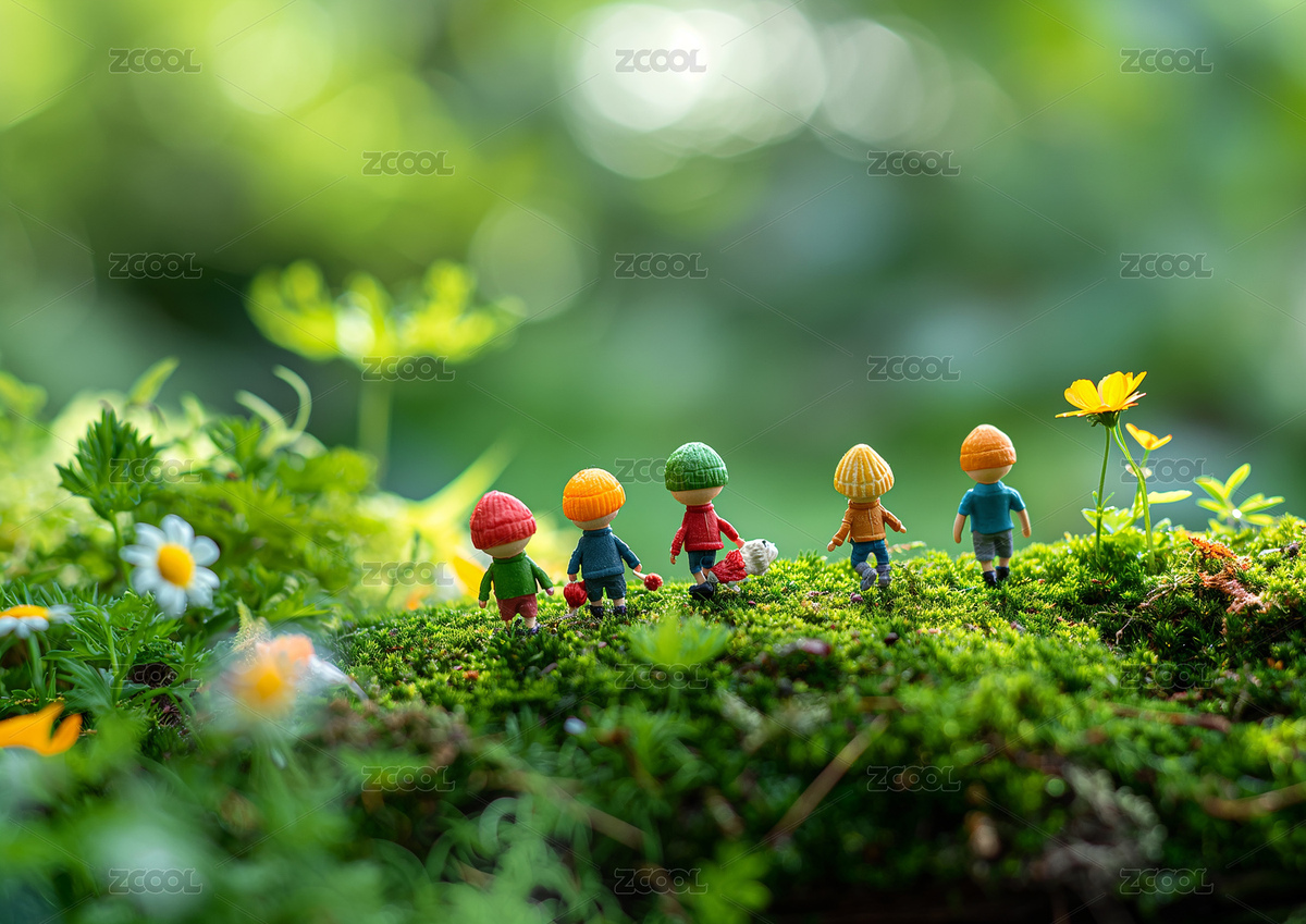 迷你微观世界一群小人偶正在种植农作物