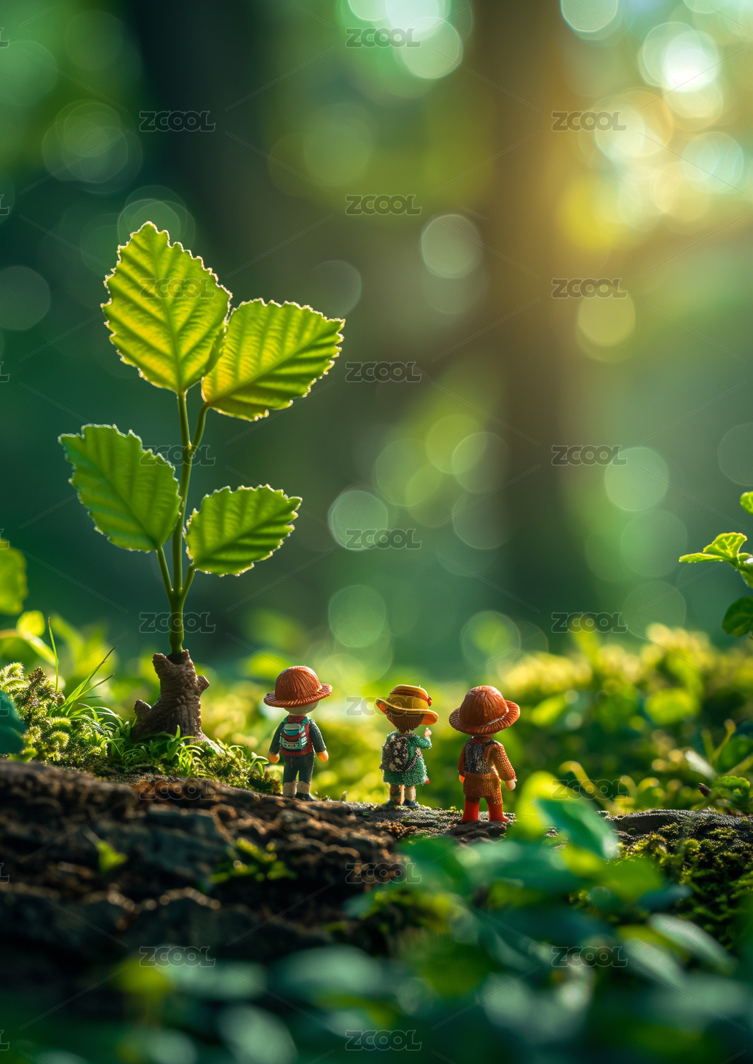 绿色生态微缩摄影微距工人正在植树 绿色生