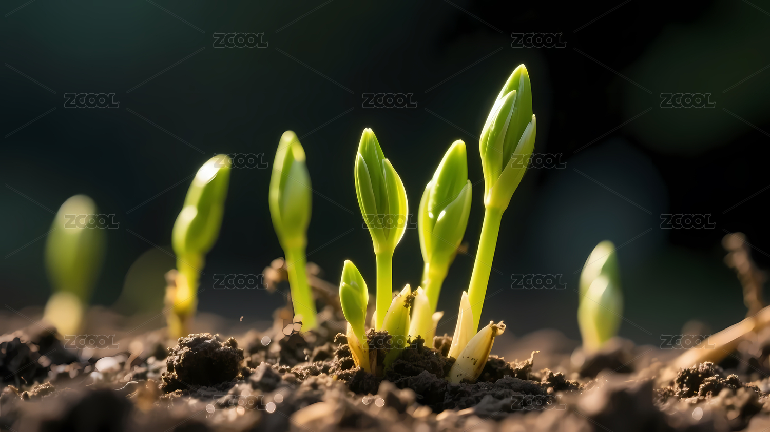 嫩绿幼苗暗色土壤环境